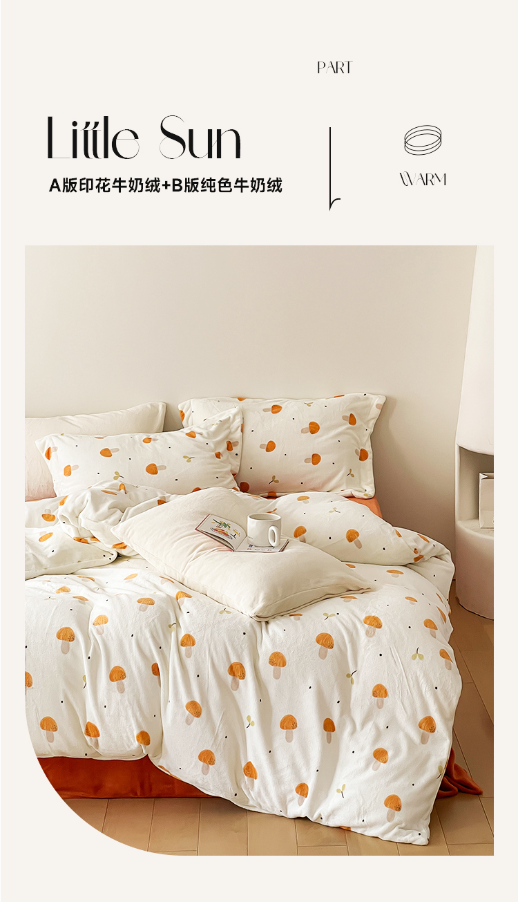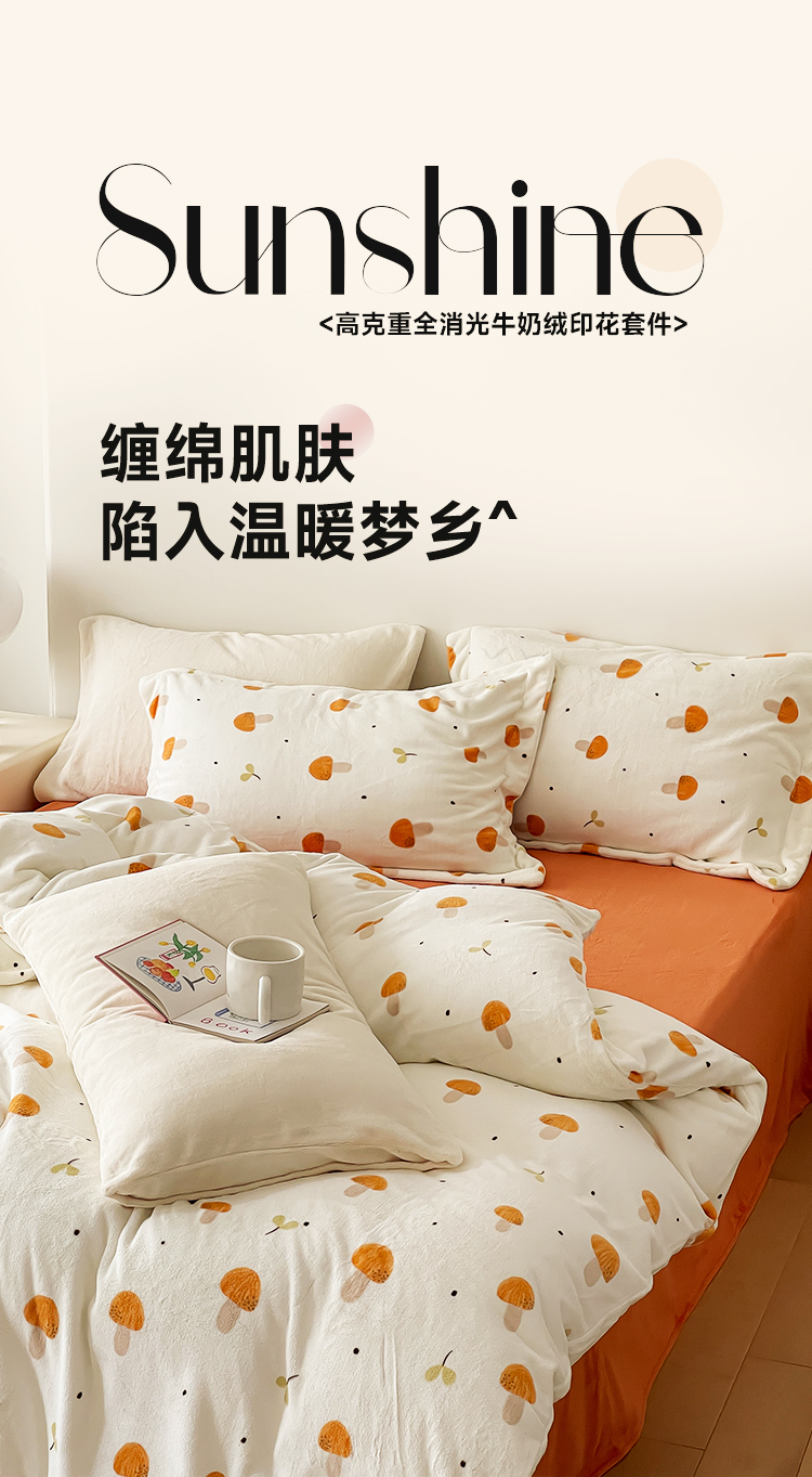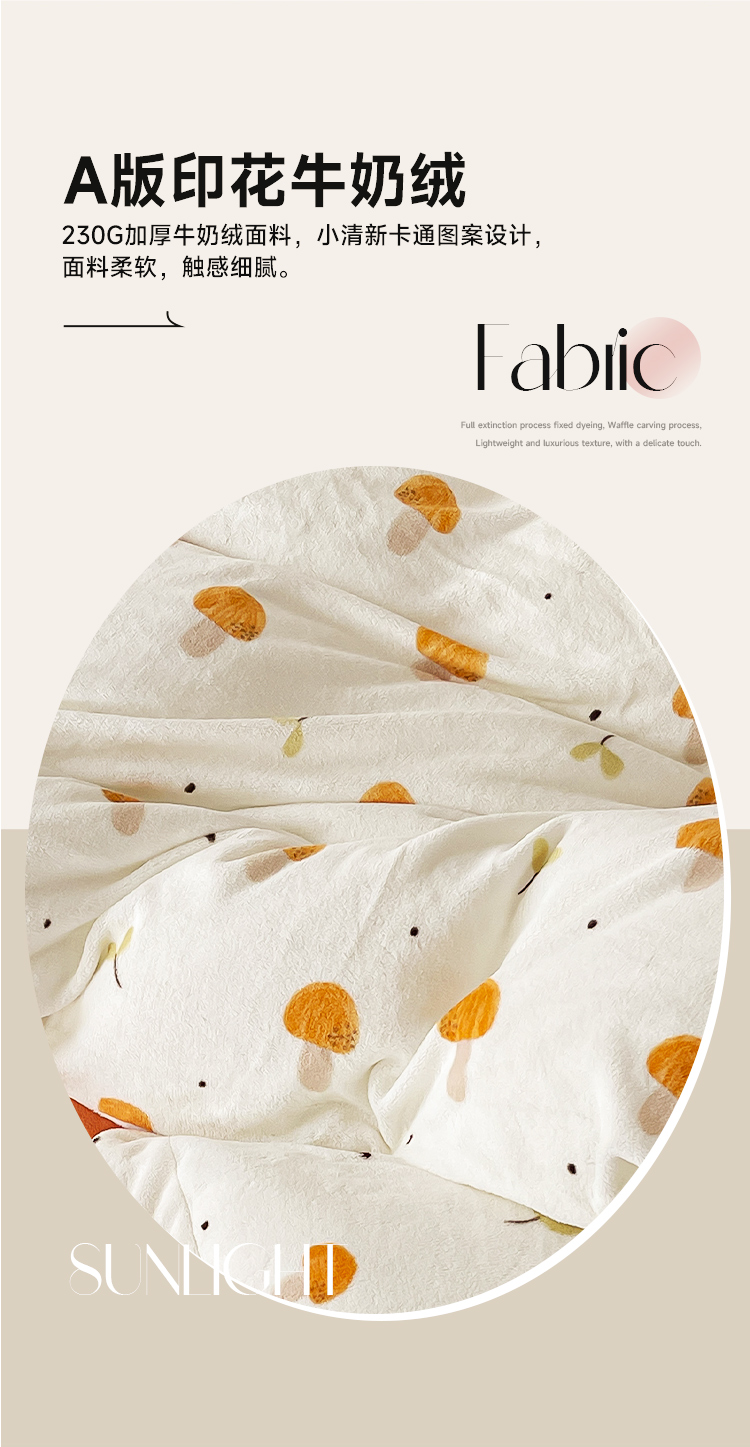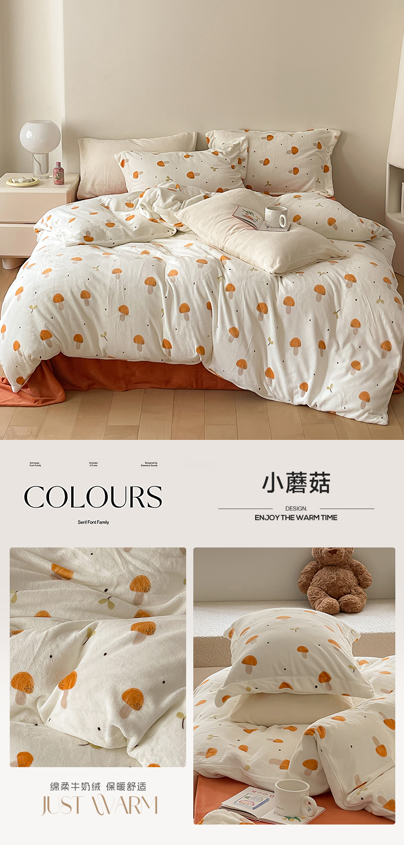 当前位置: 91家纺网 > 商品网购 > 床品套件 > 四件套 > 牛奶绒四件套 > 时光里 2023新款全消光加厚牛奶绒印花四件套 小蘑菇