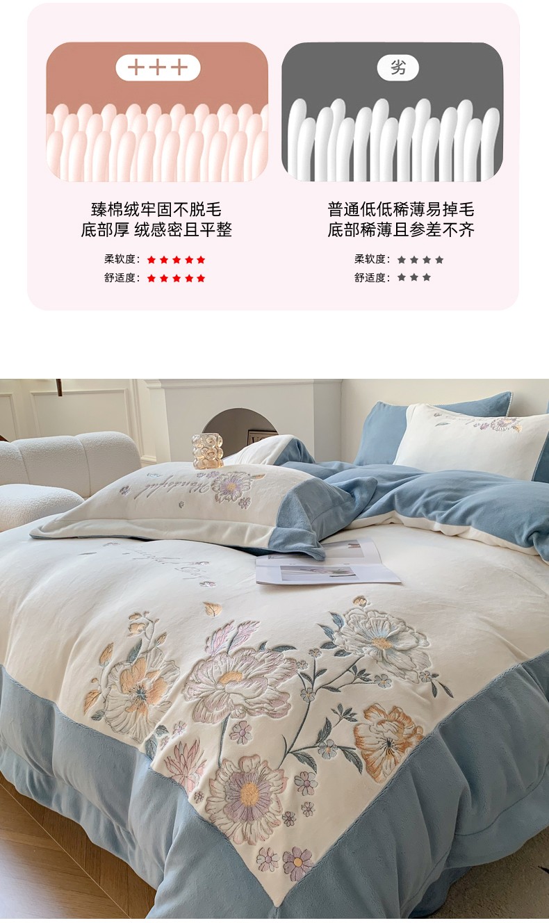 商品名称:2024高端臻棉绒工艺四件套加厚牛奶绒珊瑚绒宝宝绒冬季-缤纷花园系列