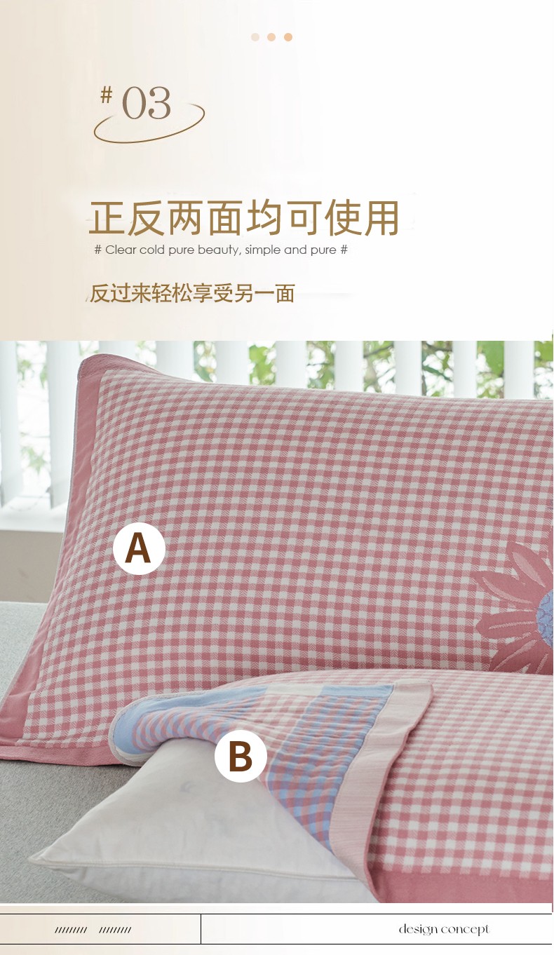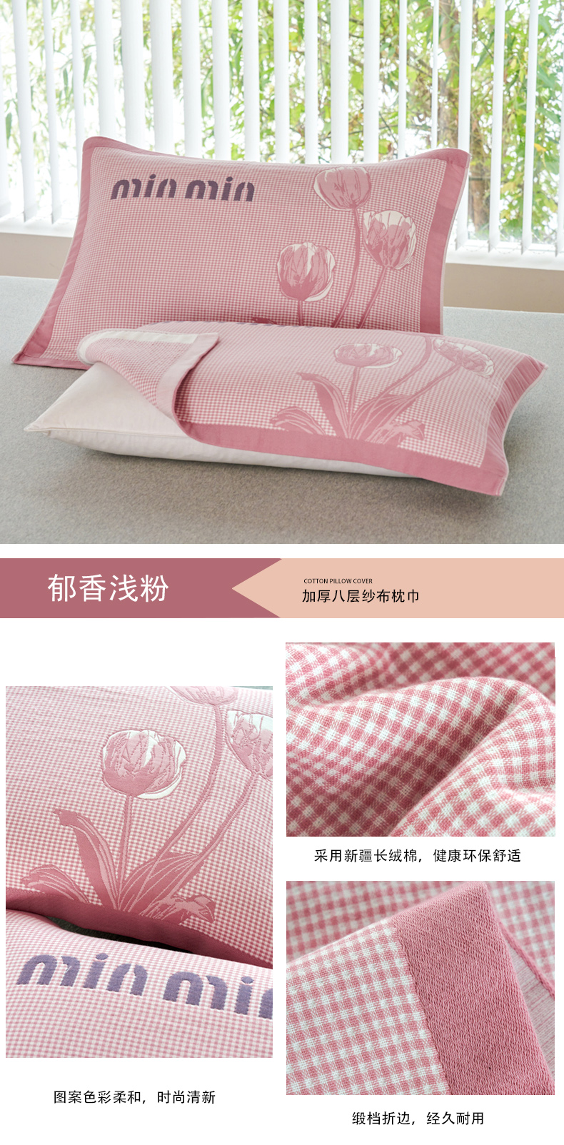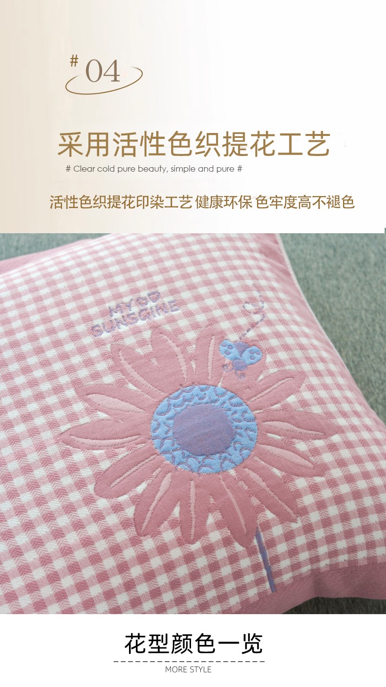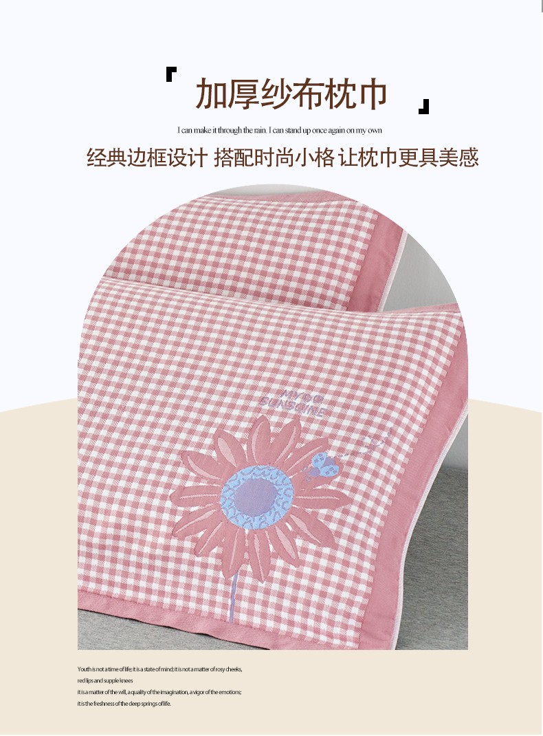 商品名称:棠薇2023新款加厚八层纯棉纱布枕巾一对装小清新小格子系列全棉枕头盖巾 雏菊浅粉52*78±2cm