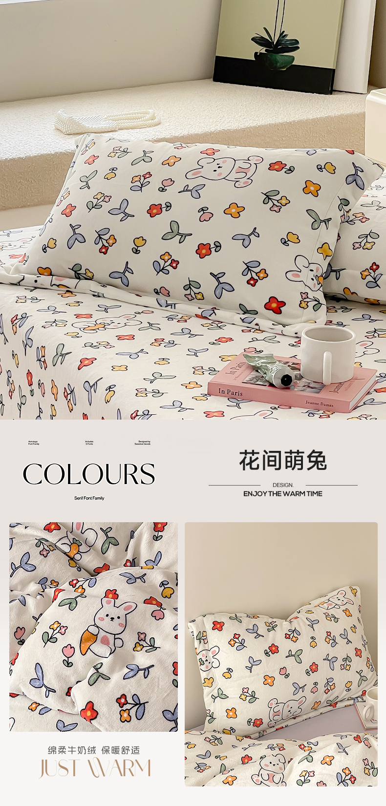 商品名称:(总)时光里 2023新款全消光加厚牛奶绒印花单品单枕套