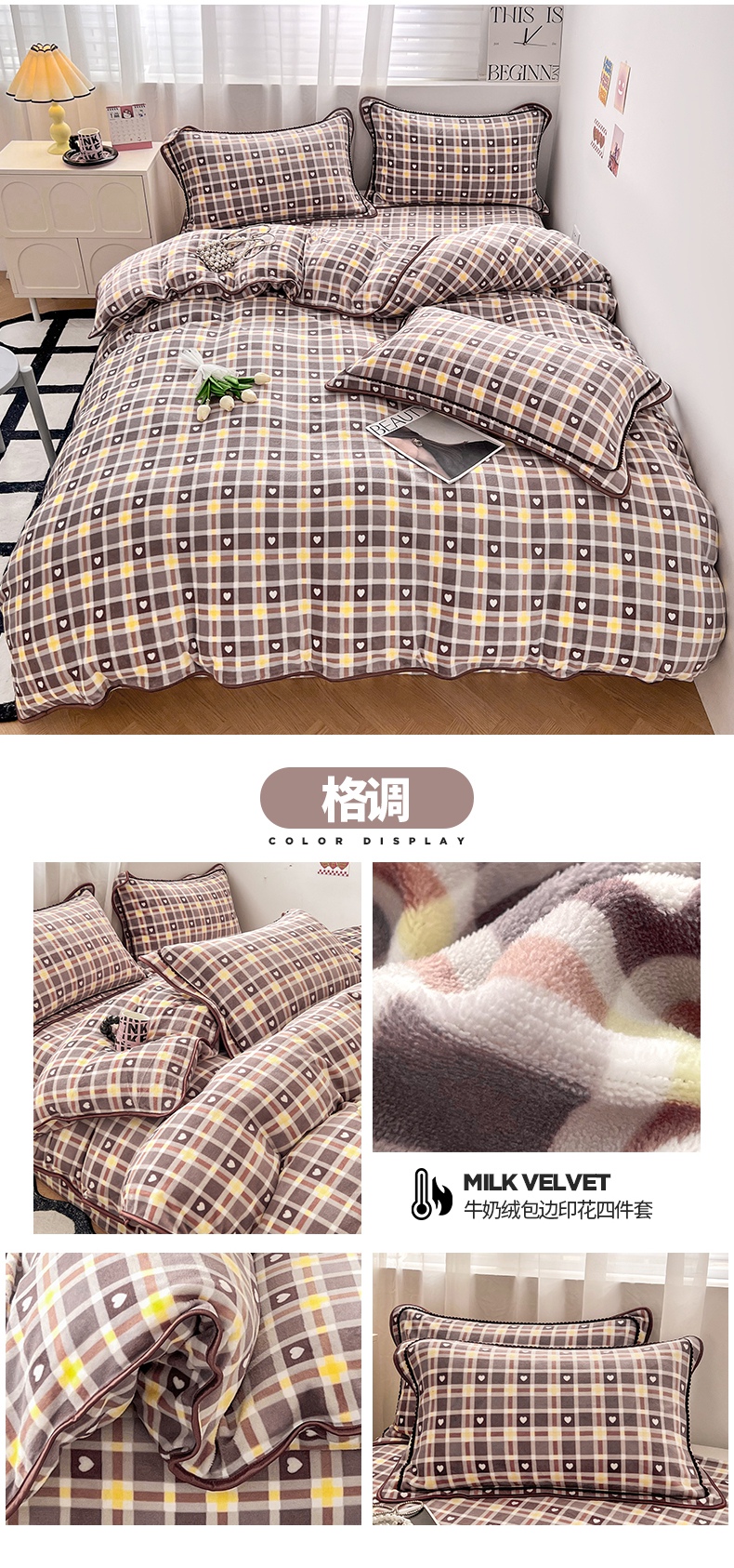 商品名称:懒猫家纺 2024新款【包边款印花】牛奶绒四件套 格调