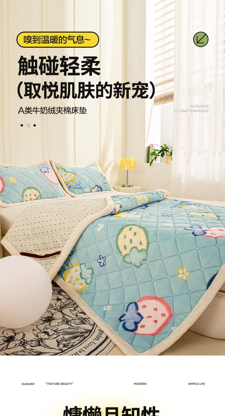 当前位置: 91家纺网 > 商品网购 > 床垫/床褥 > 普通床垫 > 慕木家纺 2025新款A类牛奶绒纯色印花加厚保暖床垫护垫床褥子 草莓花