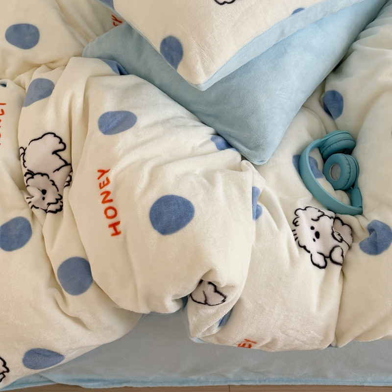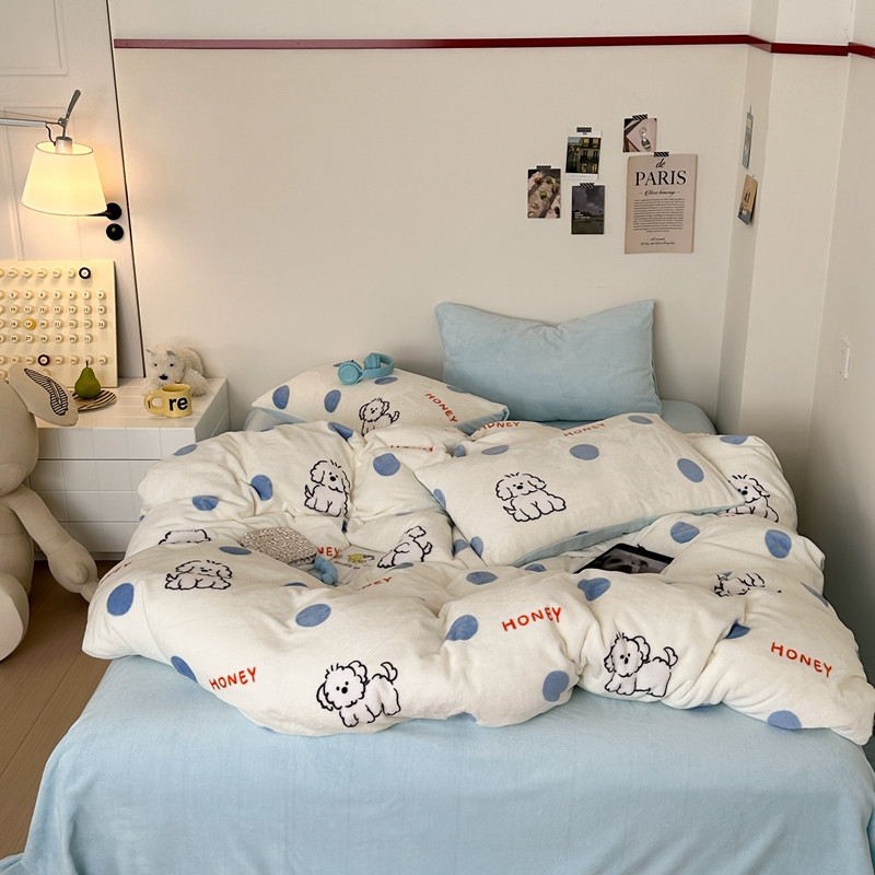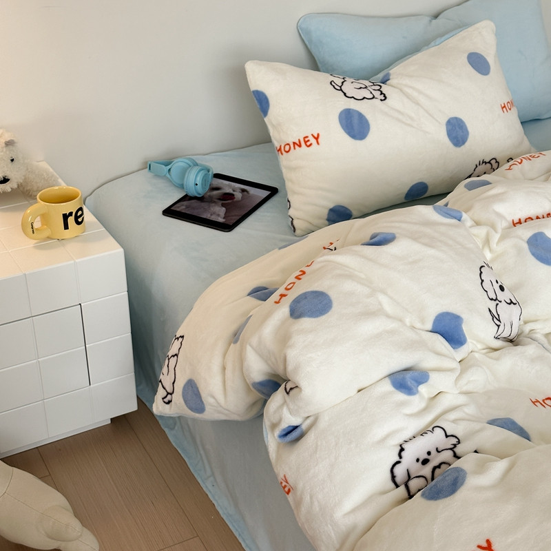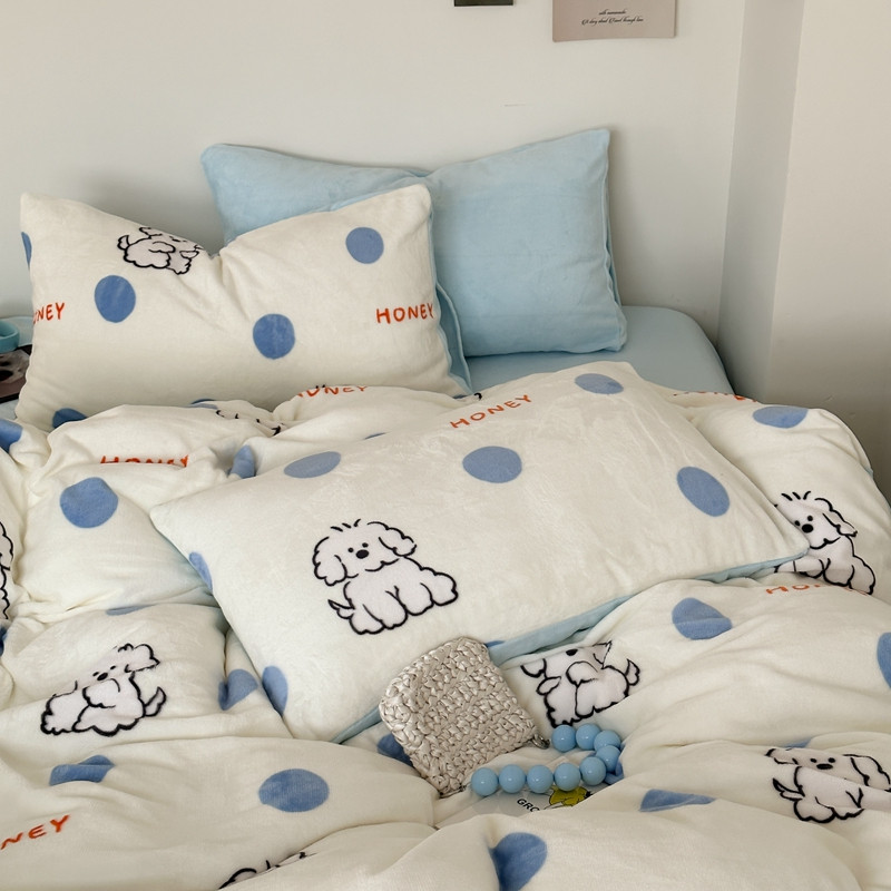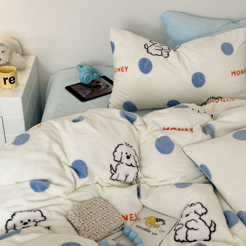 商品名称:桃喜 2024新款230g高克重牛奶绒卡通四件套 波点小狗