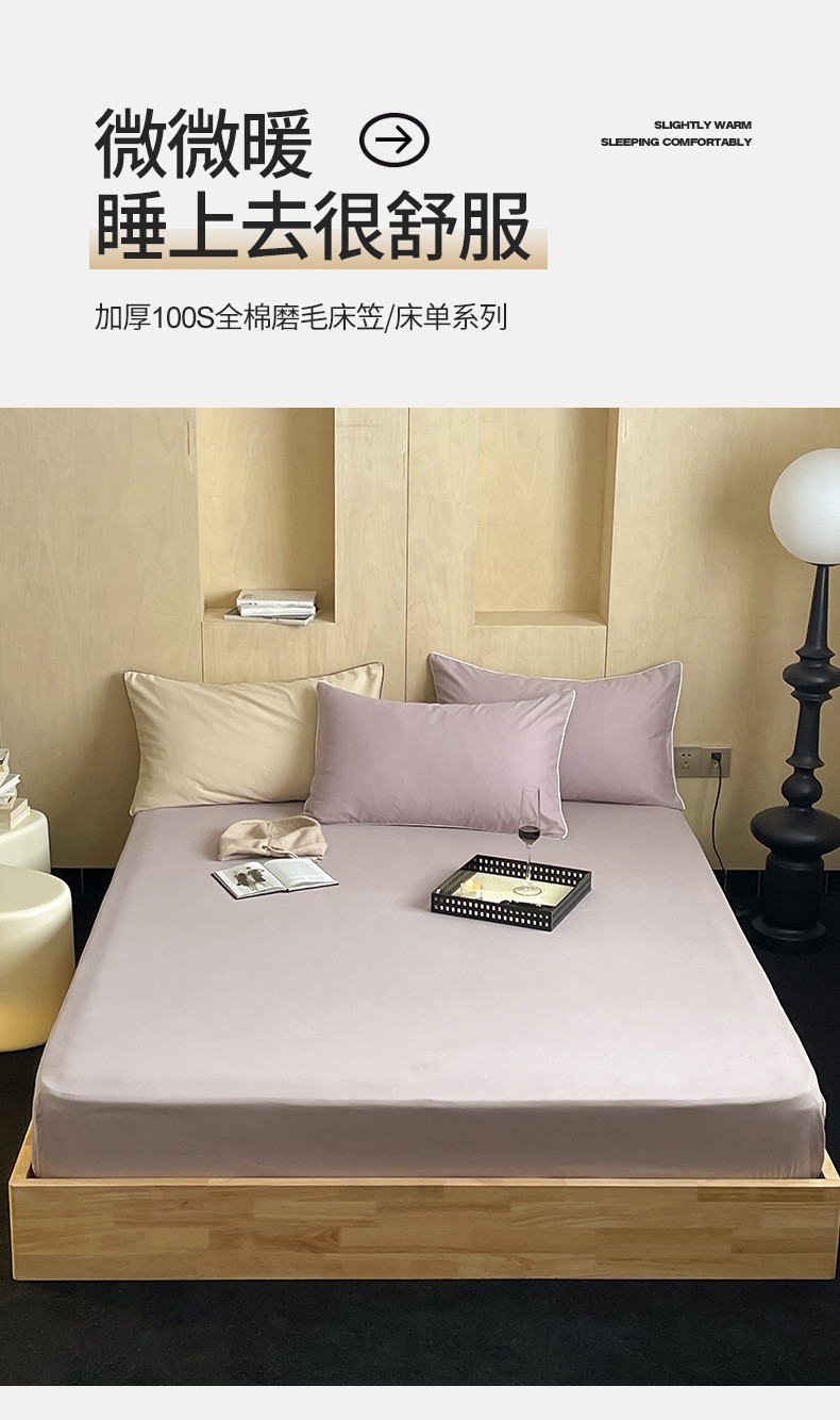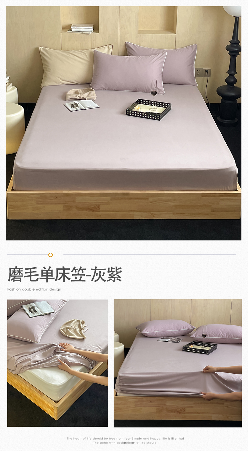 三味舒屋 2024新款加厚50s全棉磨毛单品床笠床单系列 灰紫