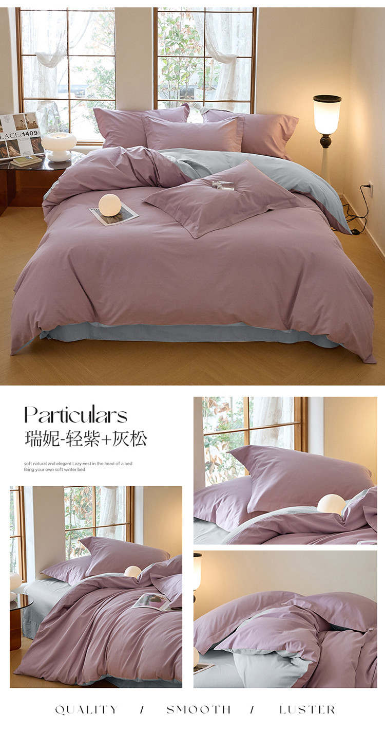 商品名称:秀色2025高端50支加厚陶瓷磨毛全棉四件套奶油风瑞妮轻紫+松灰