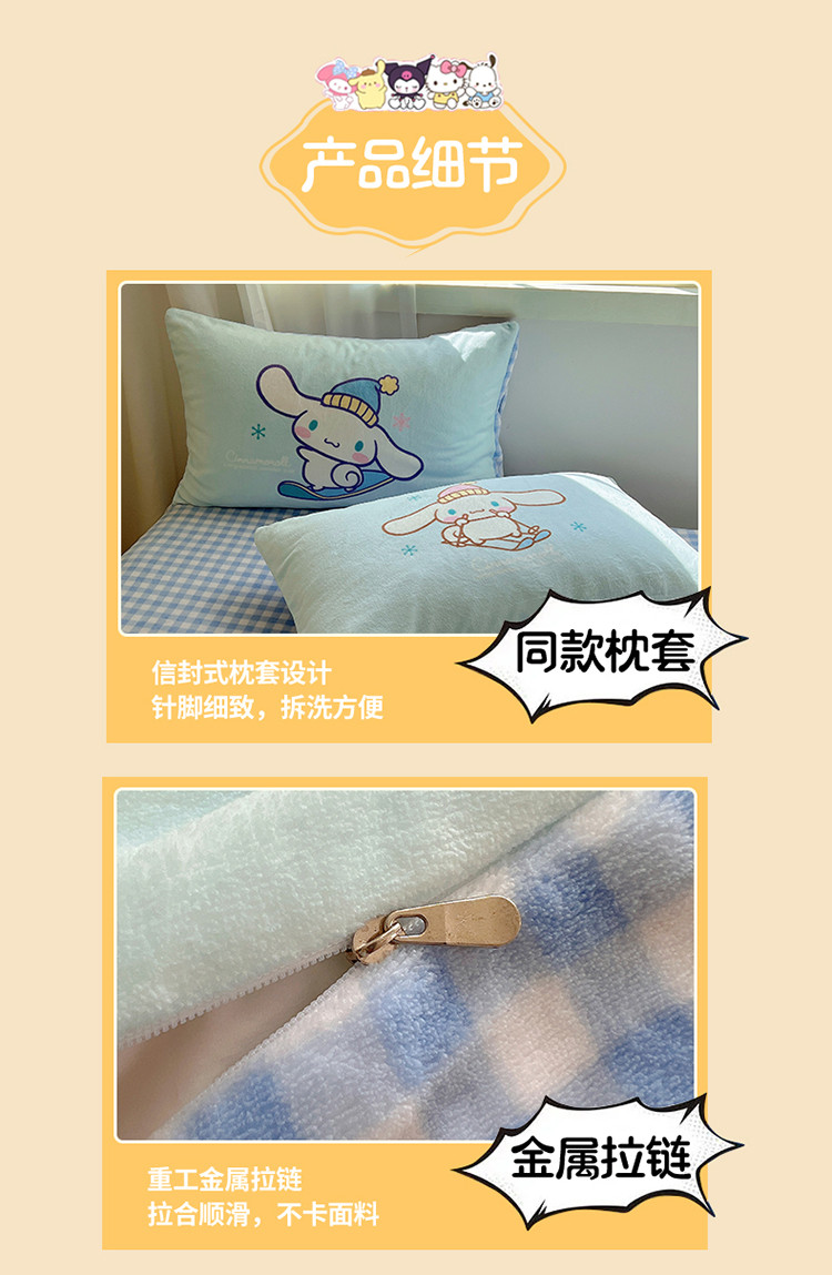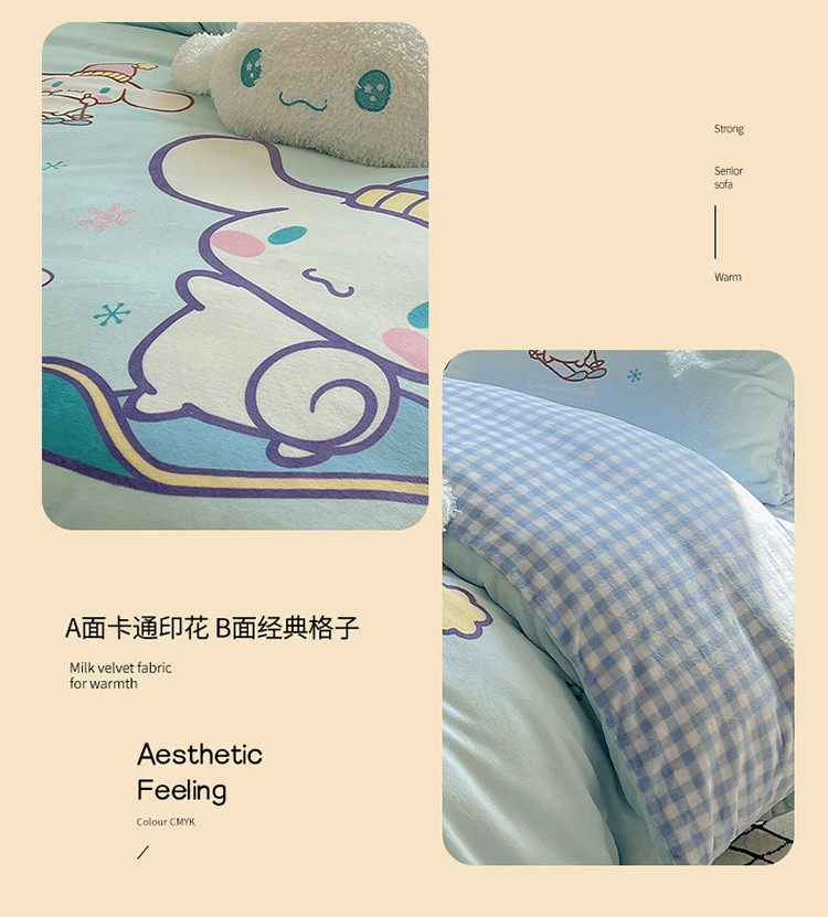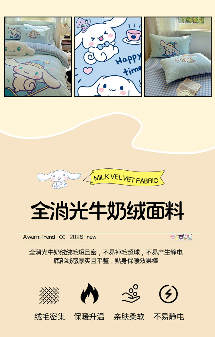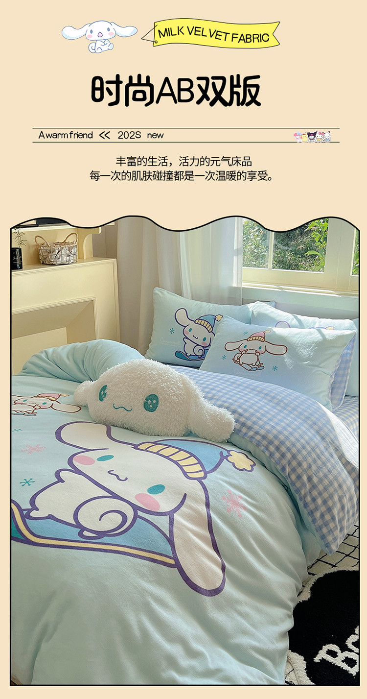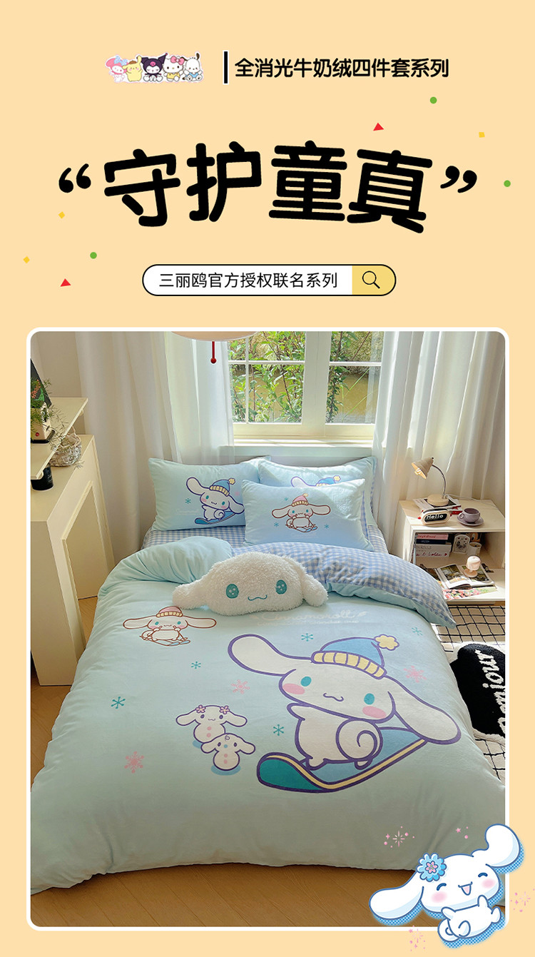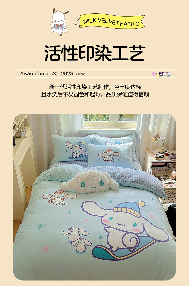 商品名称:三朵 2023新款三丽鸥牛奶绒数码印花大版系列四件套 滑板玉桂狗