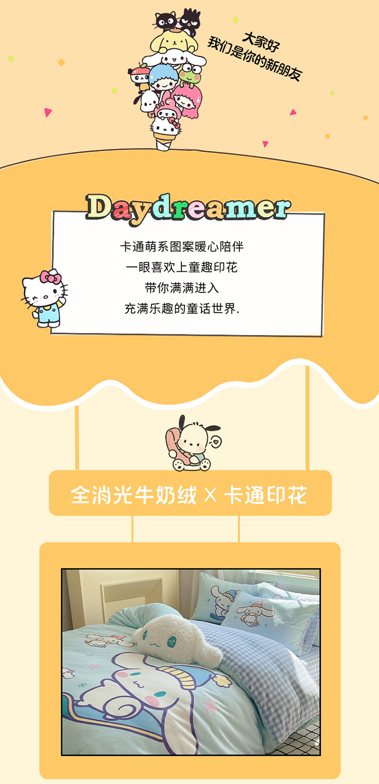 (总)三朵家纺 2024新款数码大版牛奶绒印花三丽鸥系列四件套,冰激凌KT,粉红KT,滑板玉桂狗,库洛米幻影,快乐帕恰,蓝色帕恰,美好KT,萌萌玉桂狗,奶油KT,帕恰伙伴,少女美乐蒂,天使库洛米,甜蜜帕恰