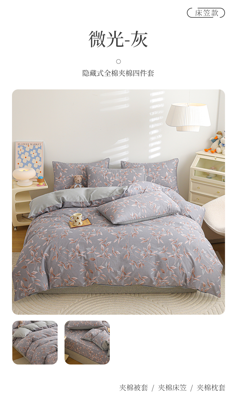商品名称:元元 2024新款13372加密精梳全棉单品套件系列-单被套 微光-灰