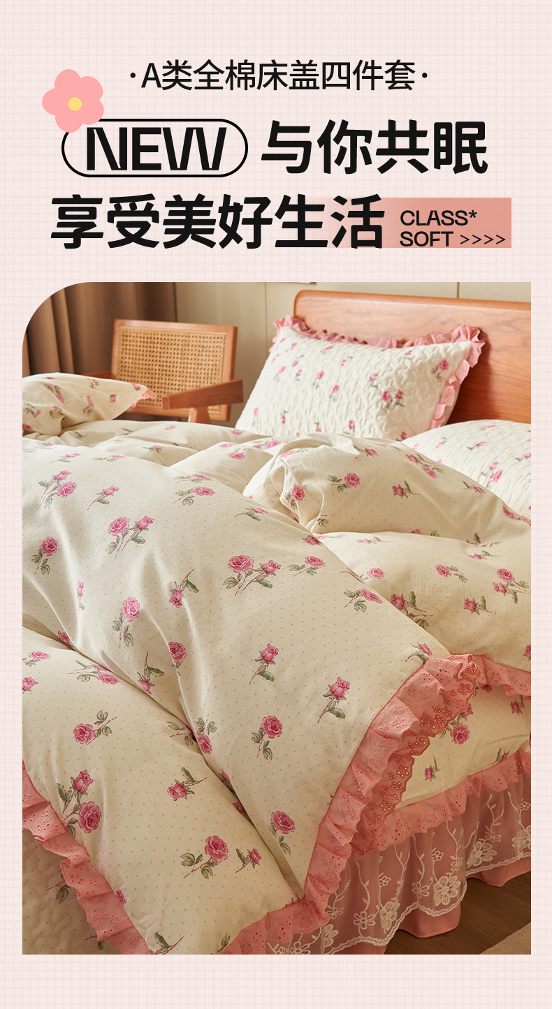 恒爱 2023新款全棉床盖四件套 丝丝花香