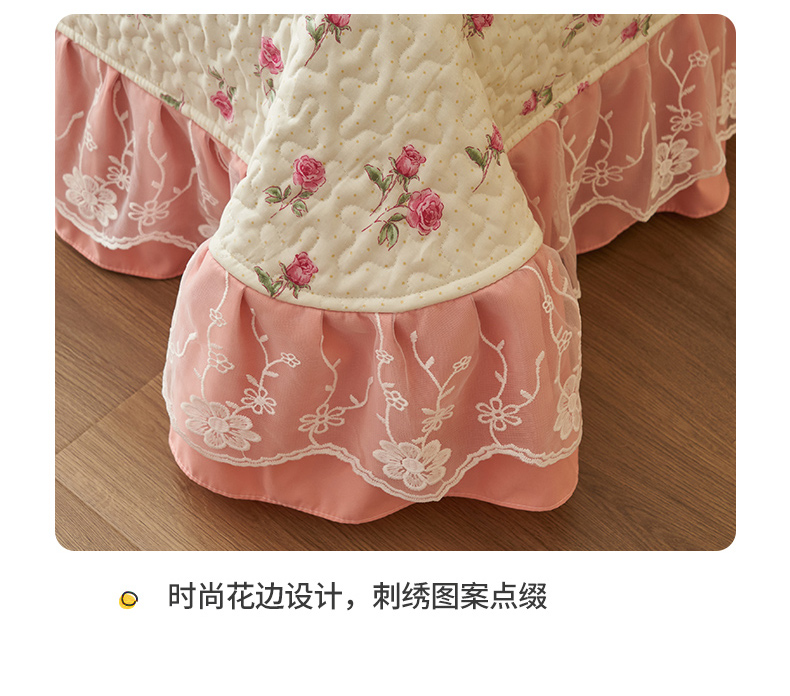 (总)恒爱家纺 2025新款牛奶绒贴布绣夹棉床裙四件套,豆沙红,浪漫紫,天空蓝,温馨粉,象牙白