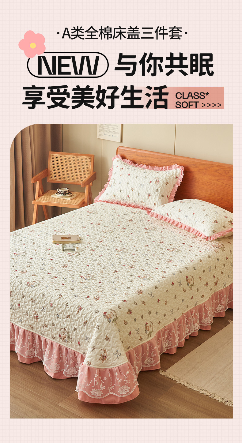 商品名称:恒爱 2023新款全棉床盖三件套 幸运兔