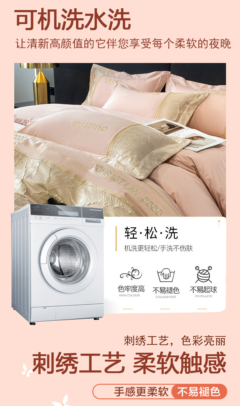 (总)涵宸家纺 2025新款全棉磨毛刺绣四件套系列-普莉,普莉-粉,普莉-绿,普莉-奶白