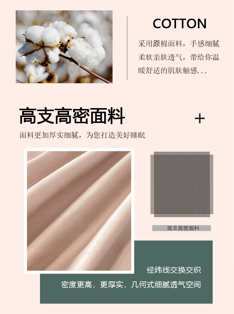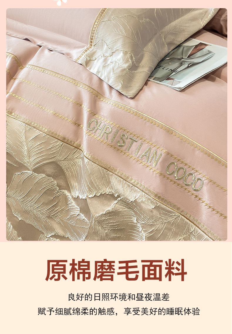 商品名称:涵宸家纺 2023新款原棉磨毛四件套-青叶 青叶-粉