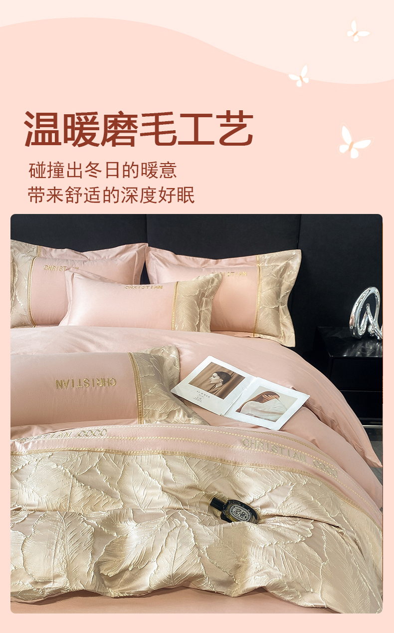 (总)涵宸家纺 2025新款雕花牛奶绒四件套,蝶舞纷飞-咖,和春-米,绿茵-粉,秋日花语,拾光-绿,怡然居- 绿,雨蝶-灰,雨蝶-卡其
