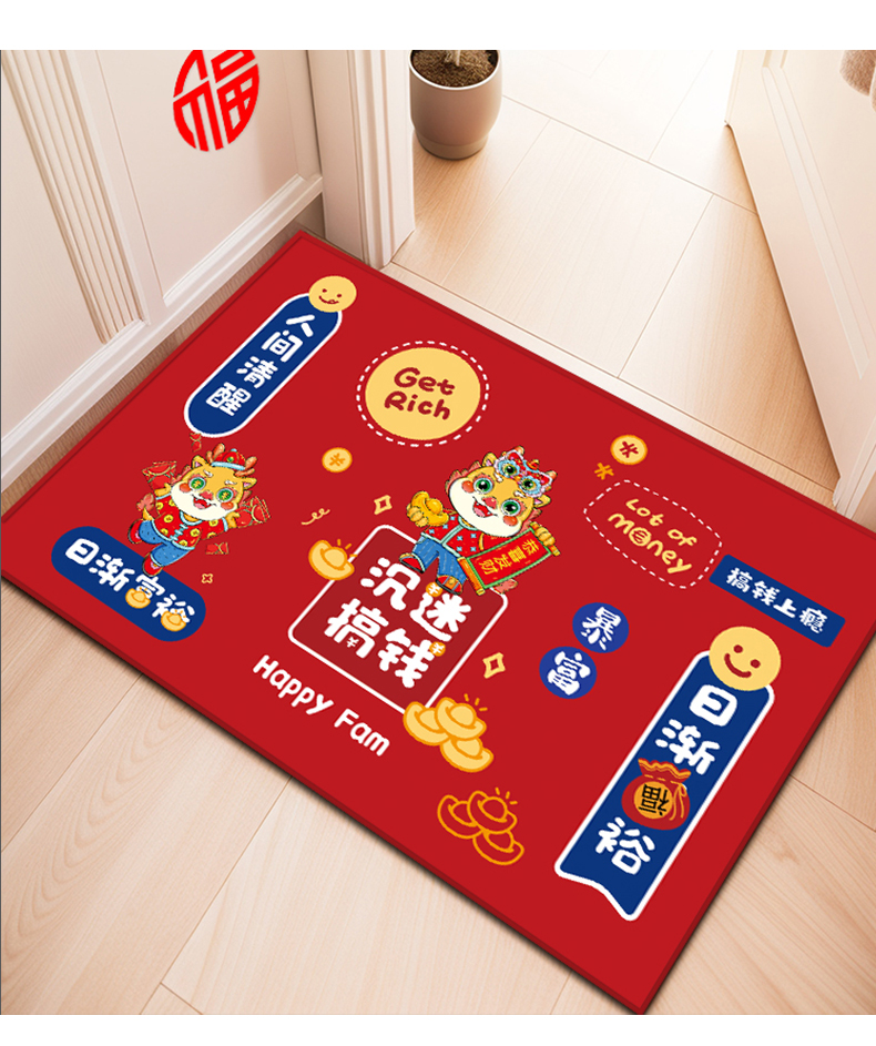 卡初家居(原微来) 2023新款水晶绒吸水吸油防滑耐磨贺岁款龙年地垫进门垫(拍摄1) 龙年-龙行好运
