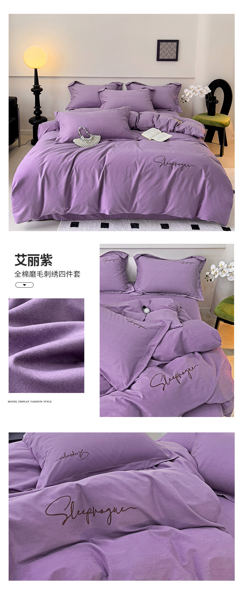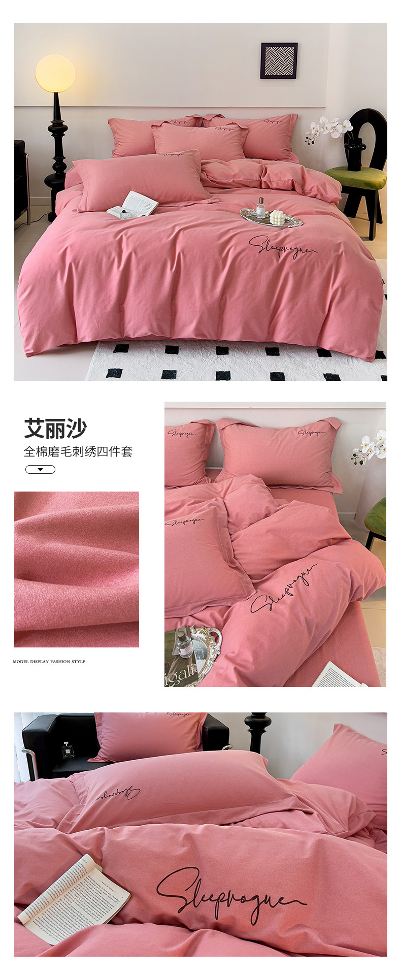 (总)慕尚家纺 2025新款全棉磨毛英文字母绣系列四件套