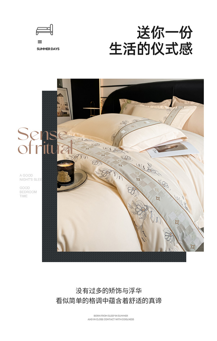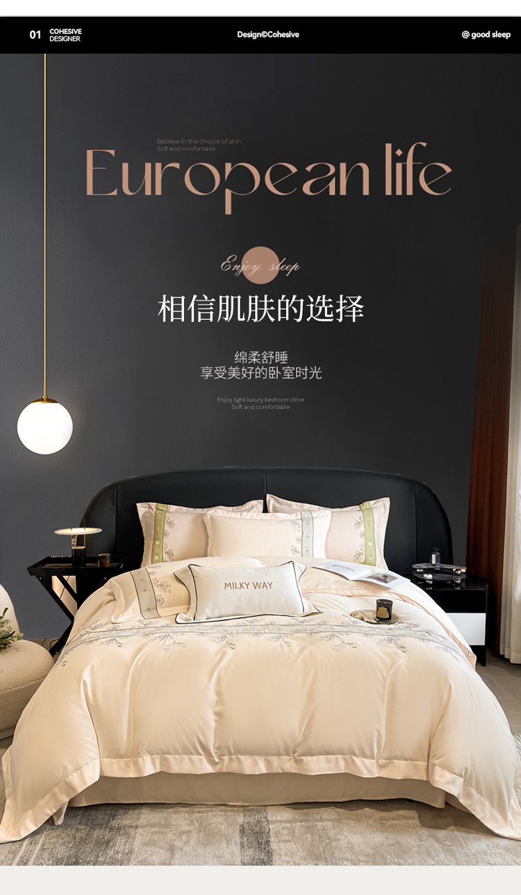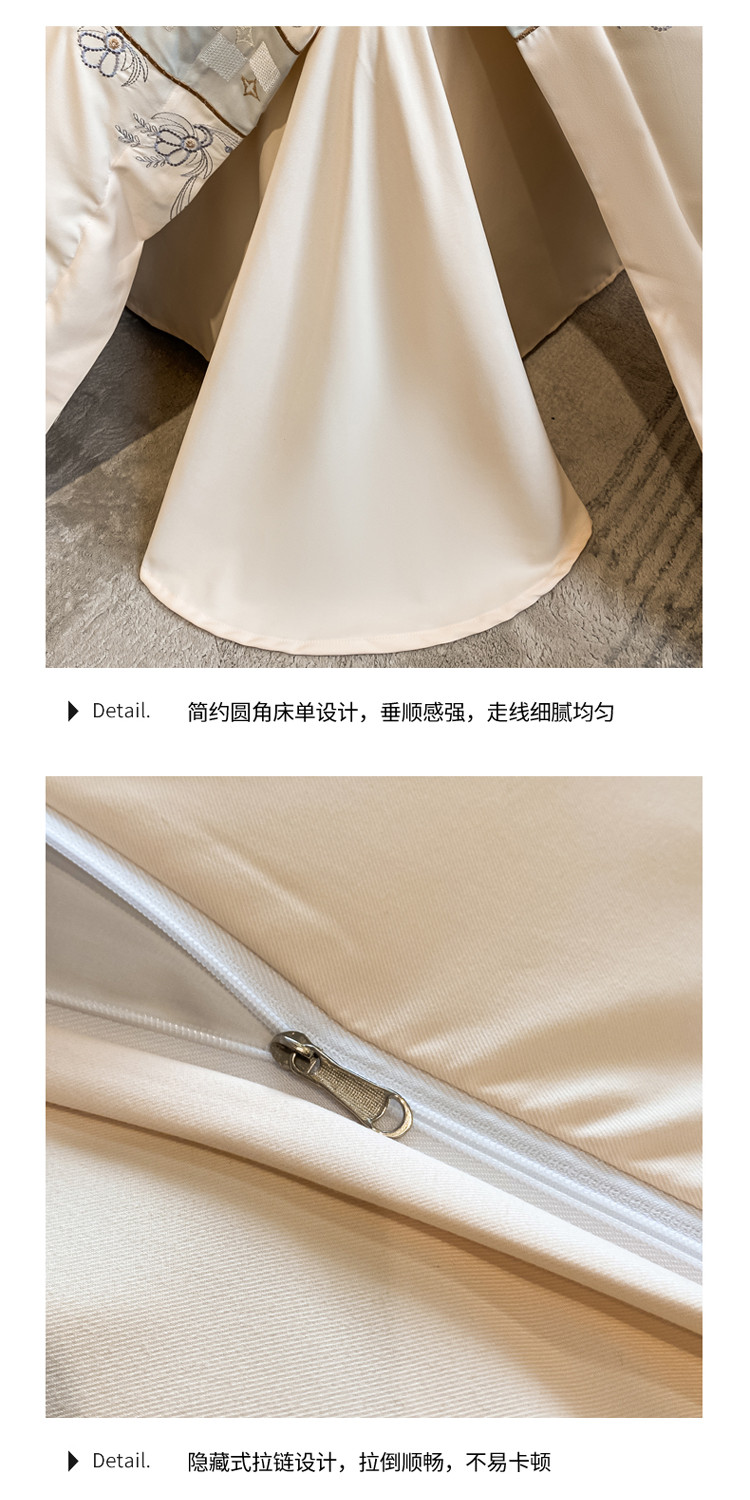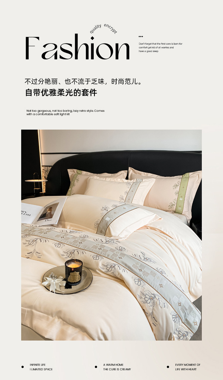 欧冠 2024四季款新品刺绣绣花款锦绣棉爱莎四件套艾莎-米黄