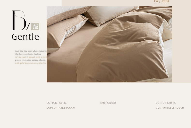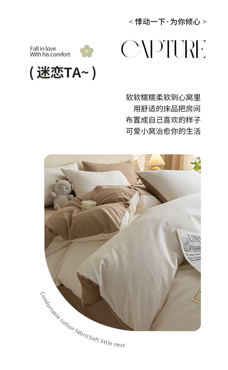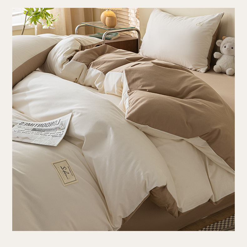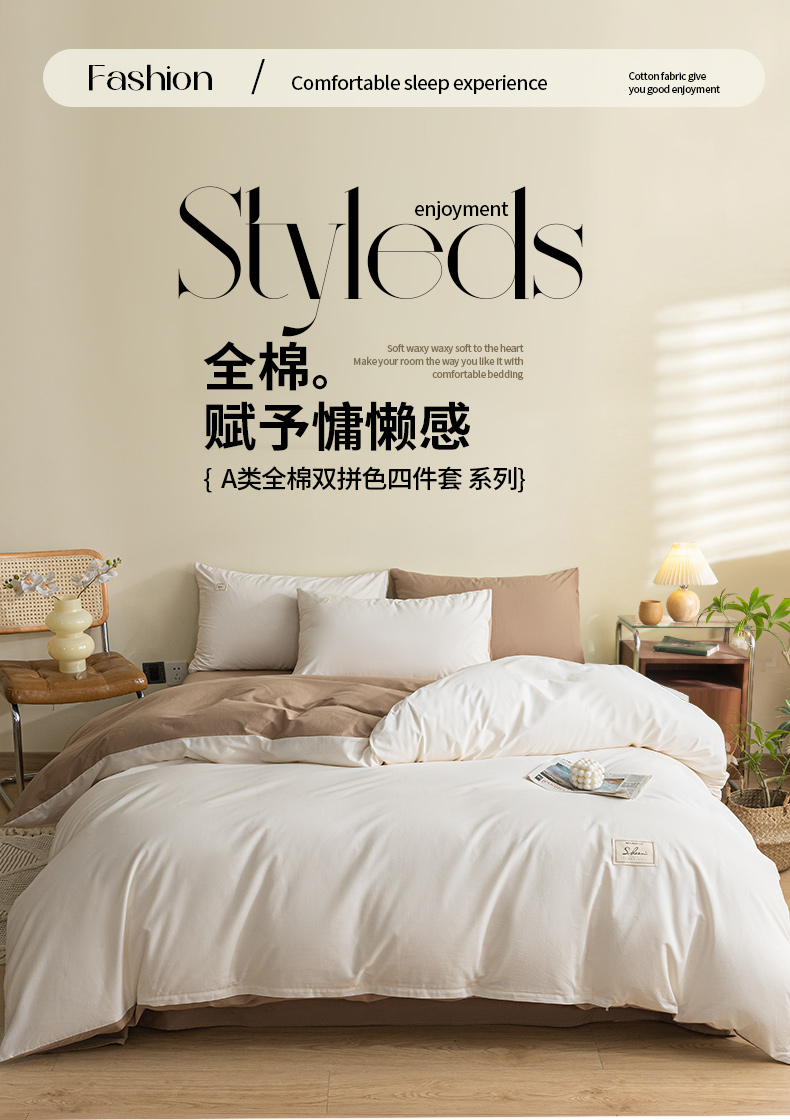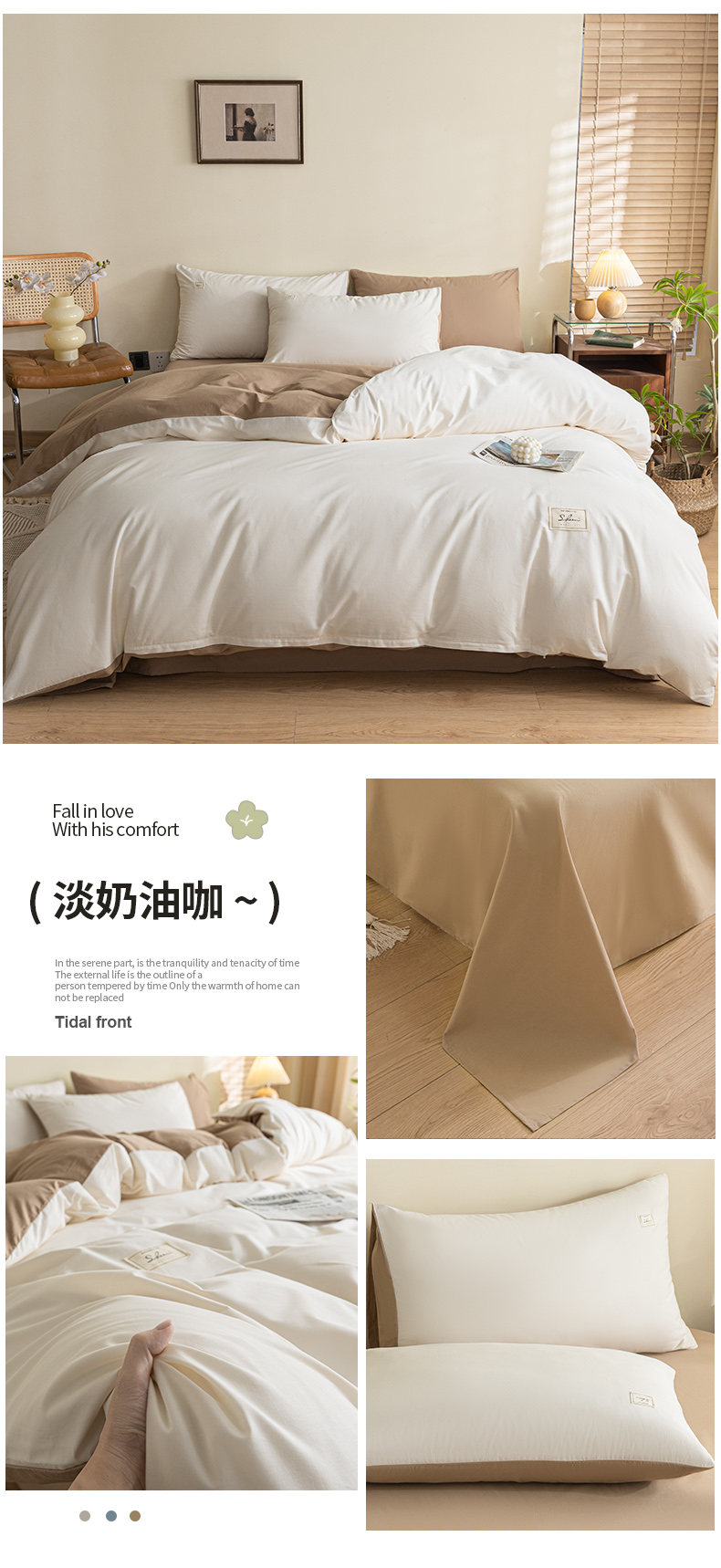 当前位置: 91家纺网 > 商品网购 > 床品套件 > 四件套 > 全棉普通四件套 > ab家纺 2024新款40支全棉双拼四件套 淡奶油咖