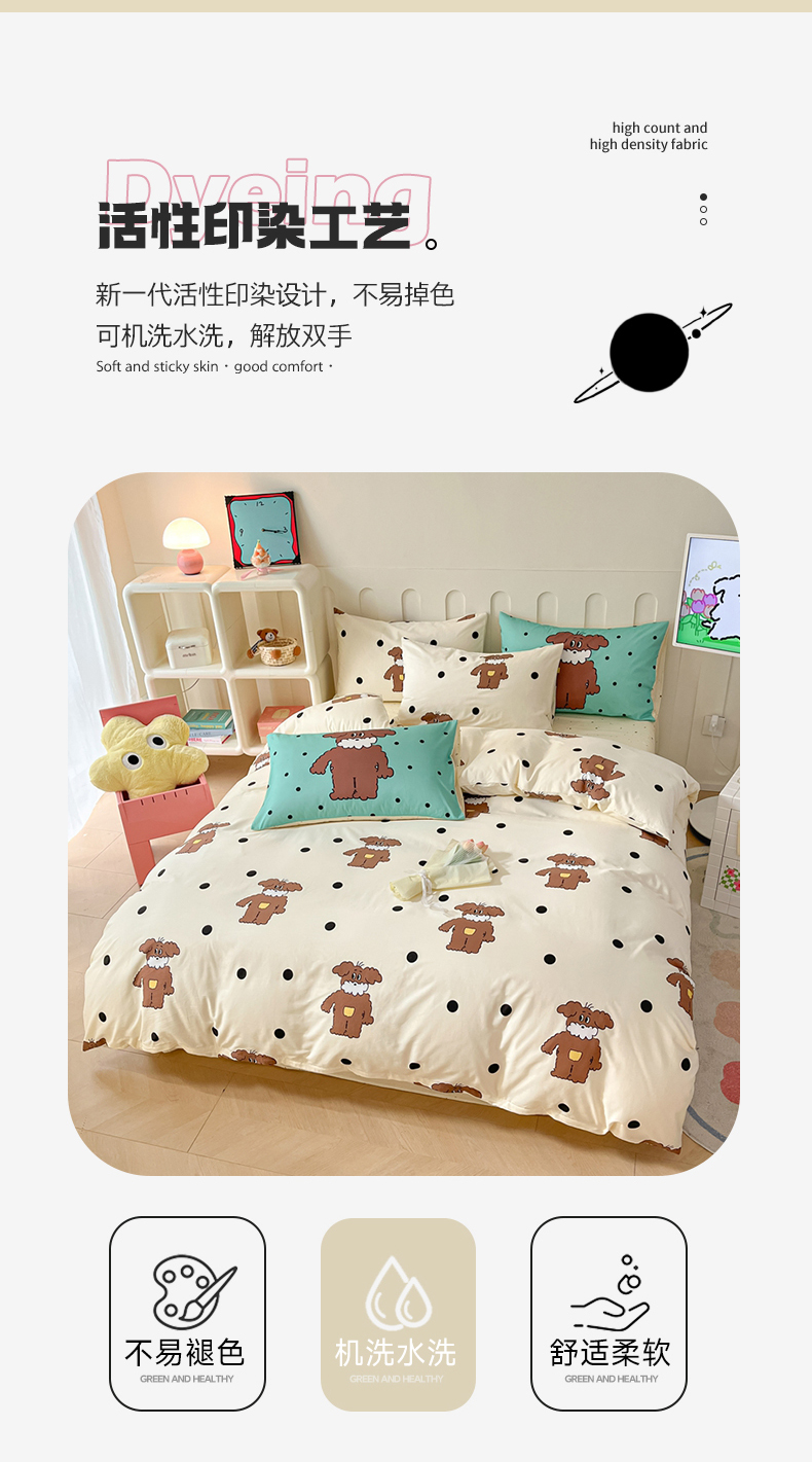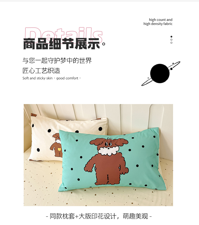 商品名称:呗旺鹿 2024新款舒适亲肤全棉40支大平网定位枕萌趣印花卡通四件套 尤克里