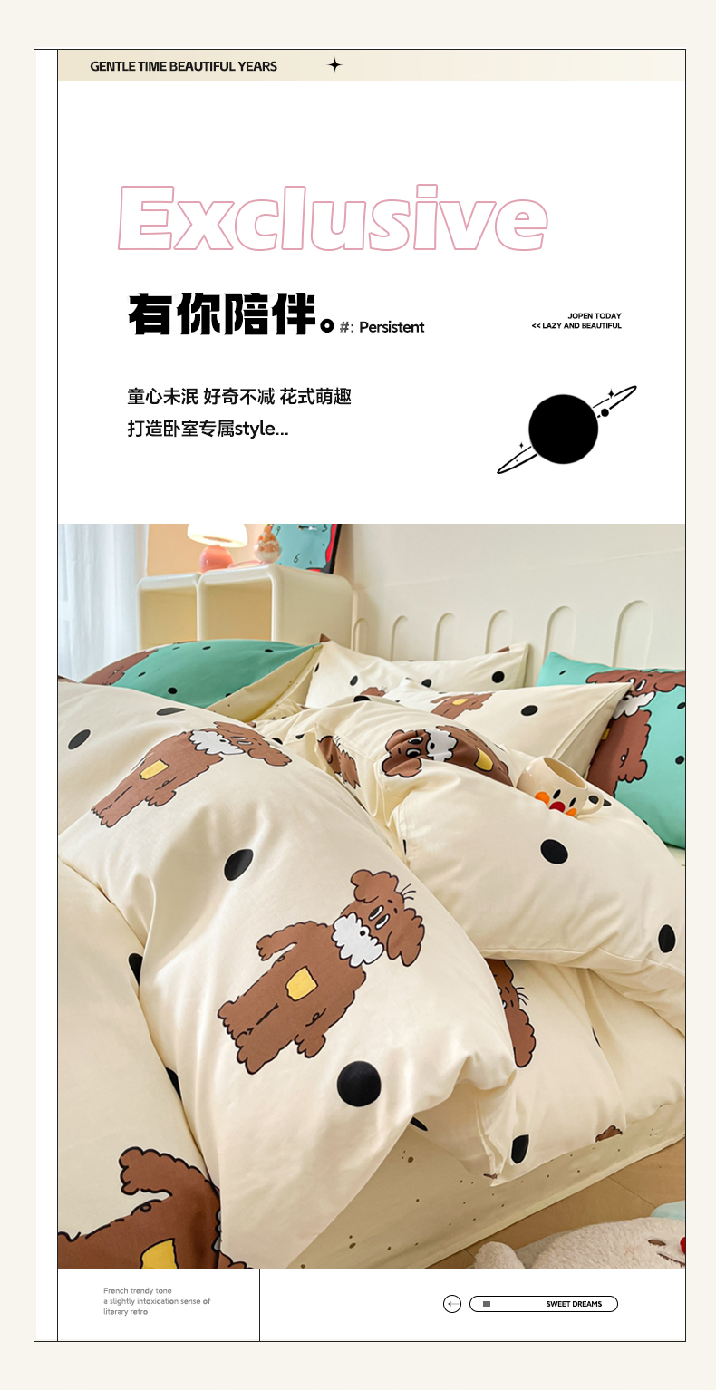 (总)呗旺鹿 2025新款A类高克重卡通印花牛奶绒印花四件套,蝴蝶结圆点小狗,开飞机的小熊,猫狗派对,奶油小猫,奶油星星狗,小熊的礼物,信封小熊,音乐小狗