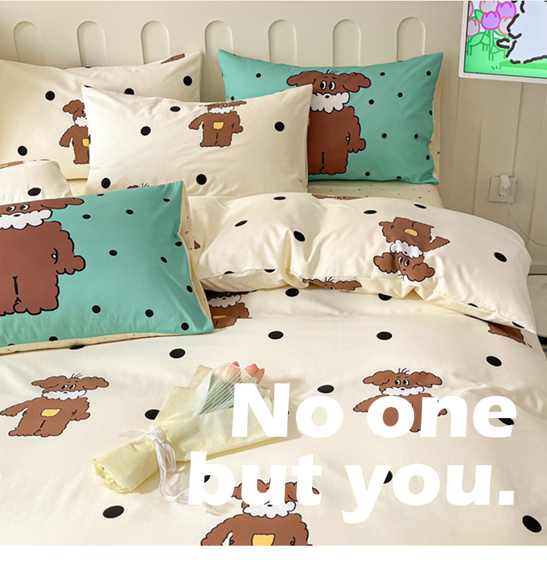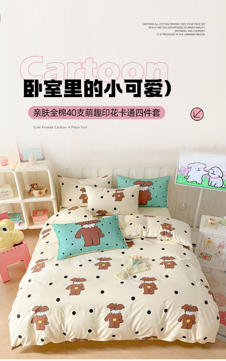 呗旺鹿 2024新款舒适亲肤全棉40支大平网定位枕萌趣印花卡通四件套 尤克里