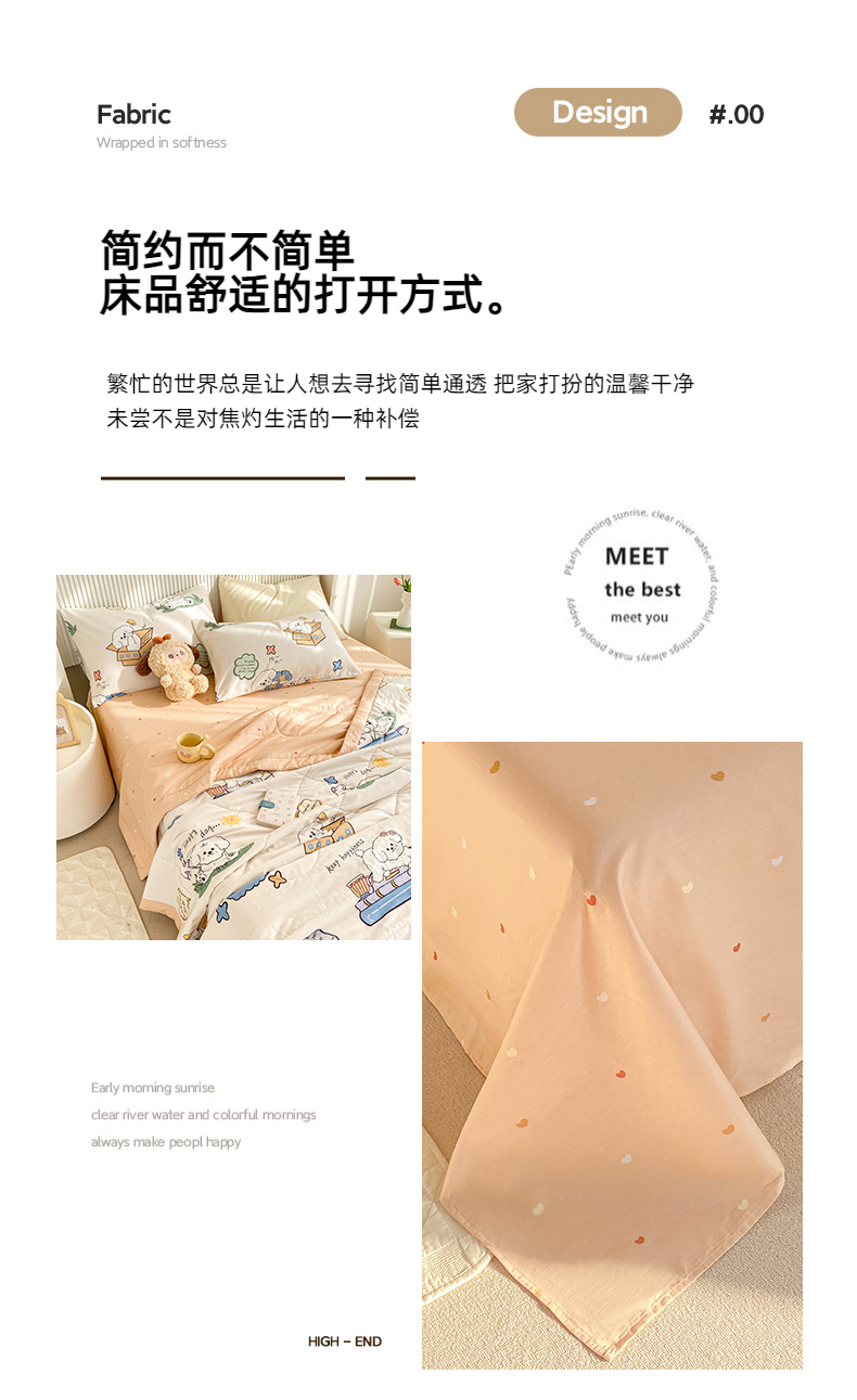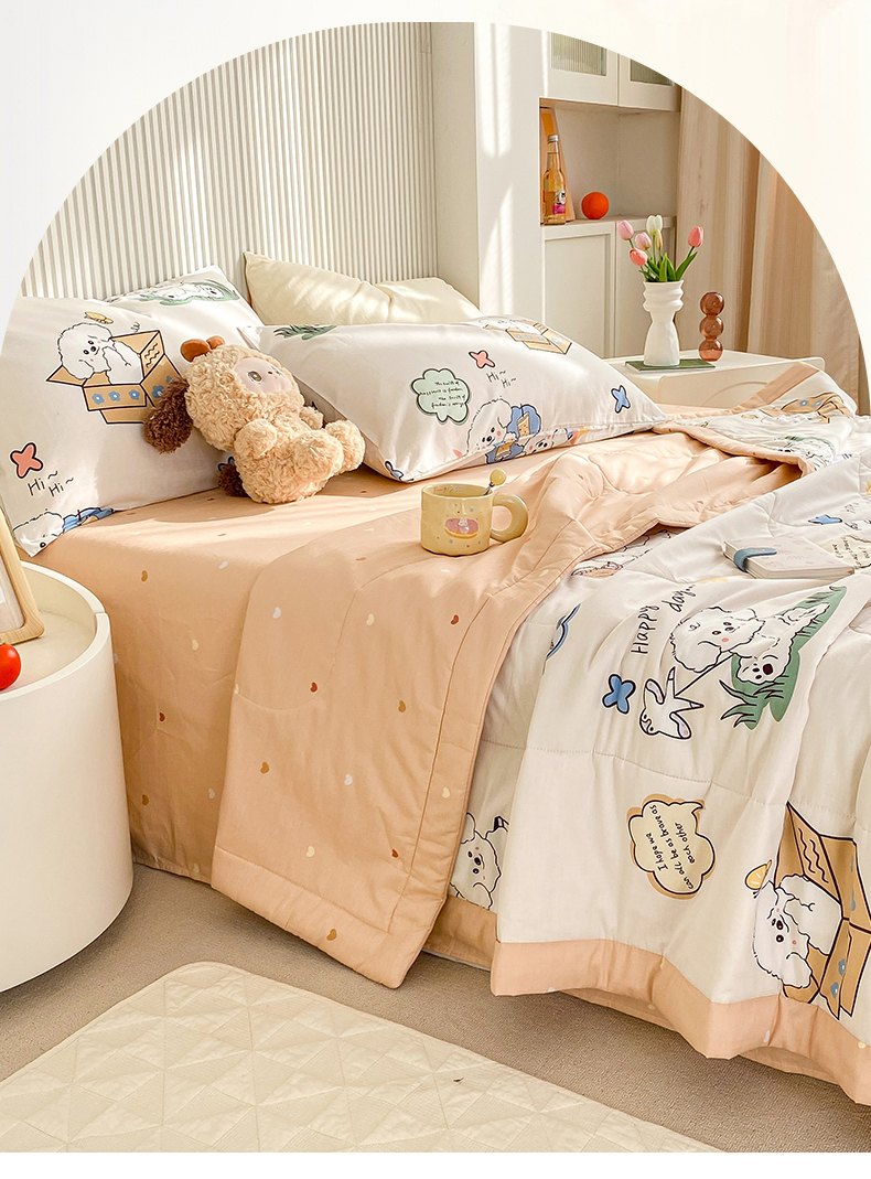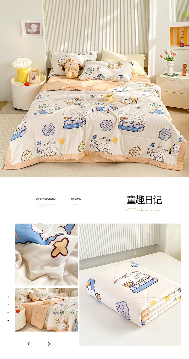 鸣升家纺 A类印花全棉12868棉花夏凉被四件套夏被 童趣日记