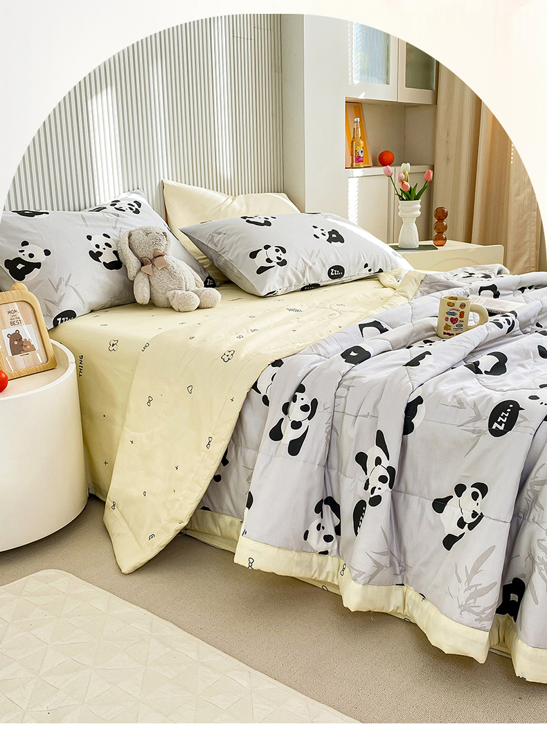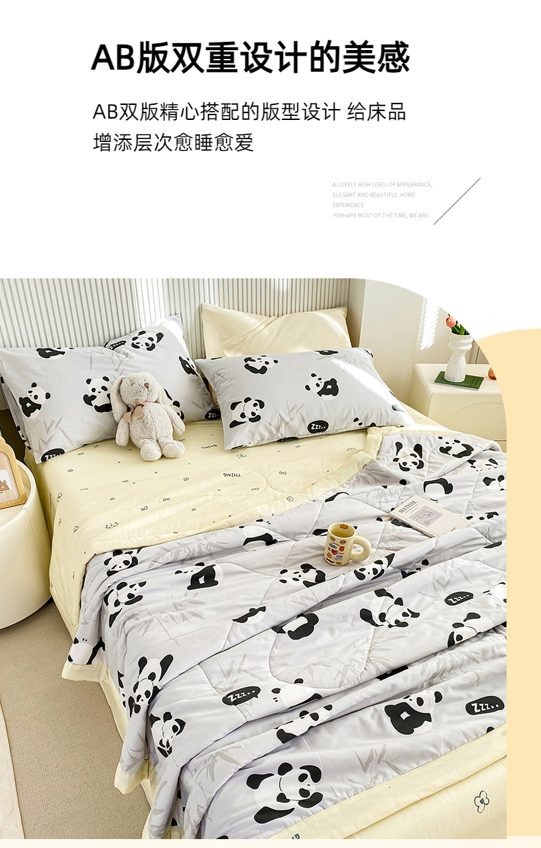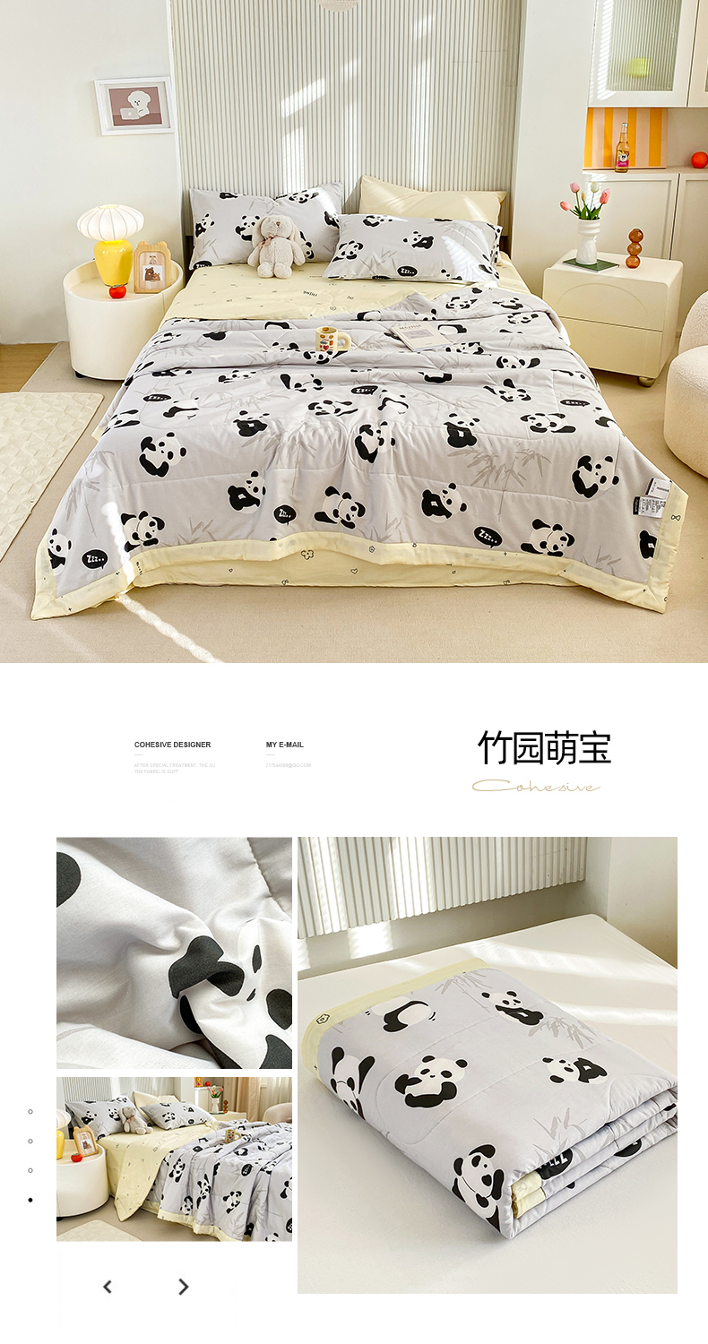 鸣升家纺 A类印花全棉12868棉花夏凉被四件套夏被 竹园萌宝