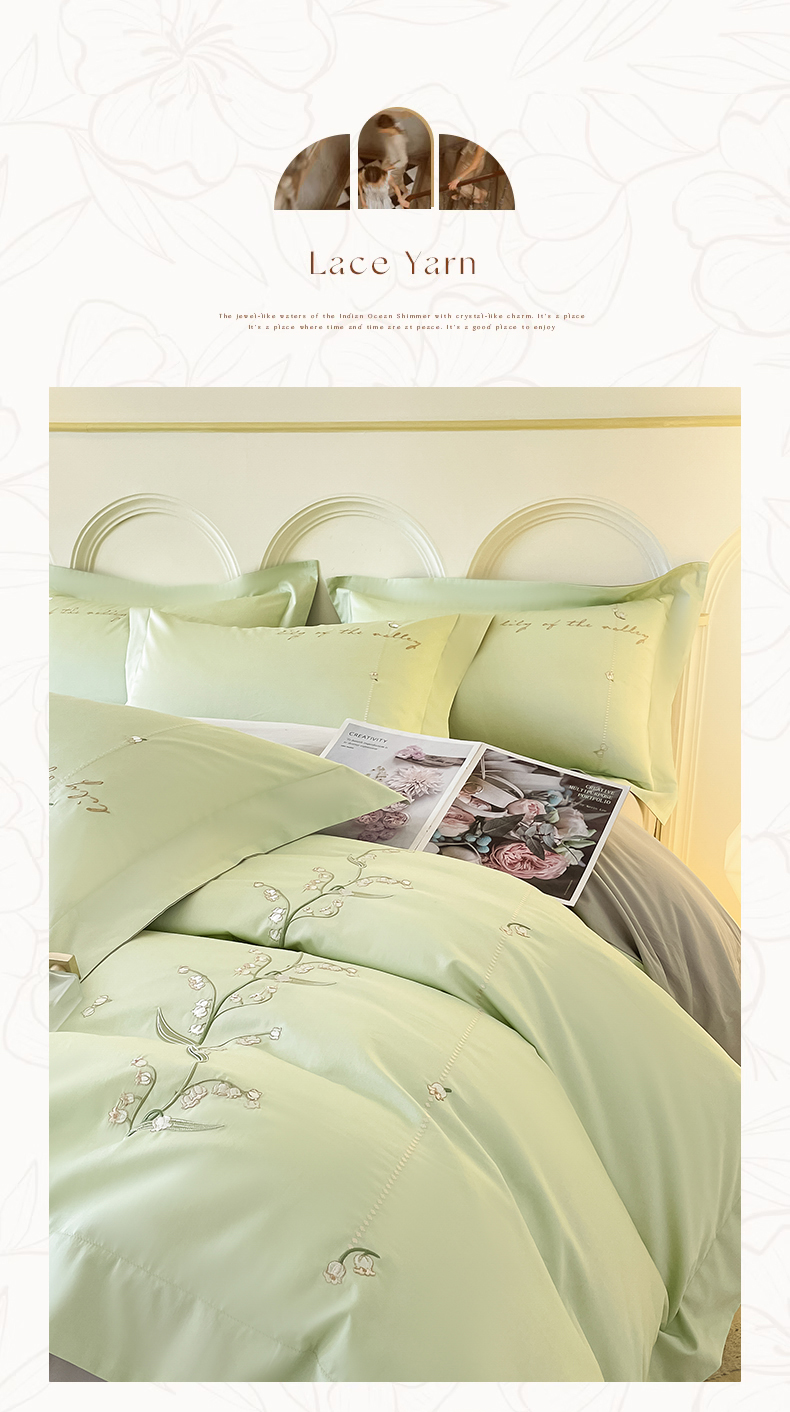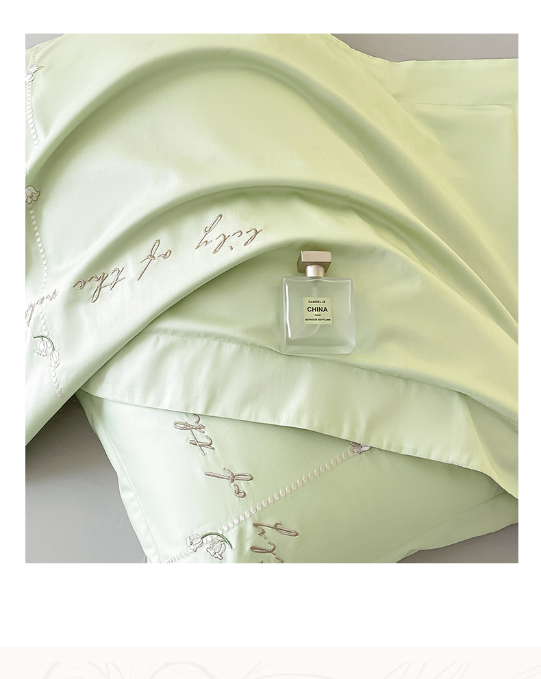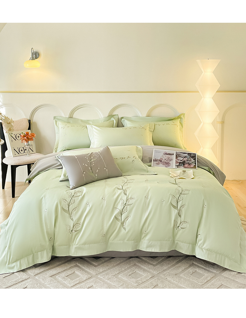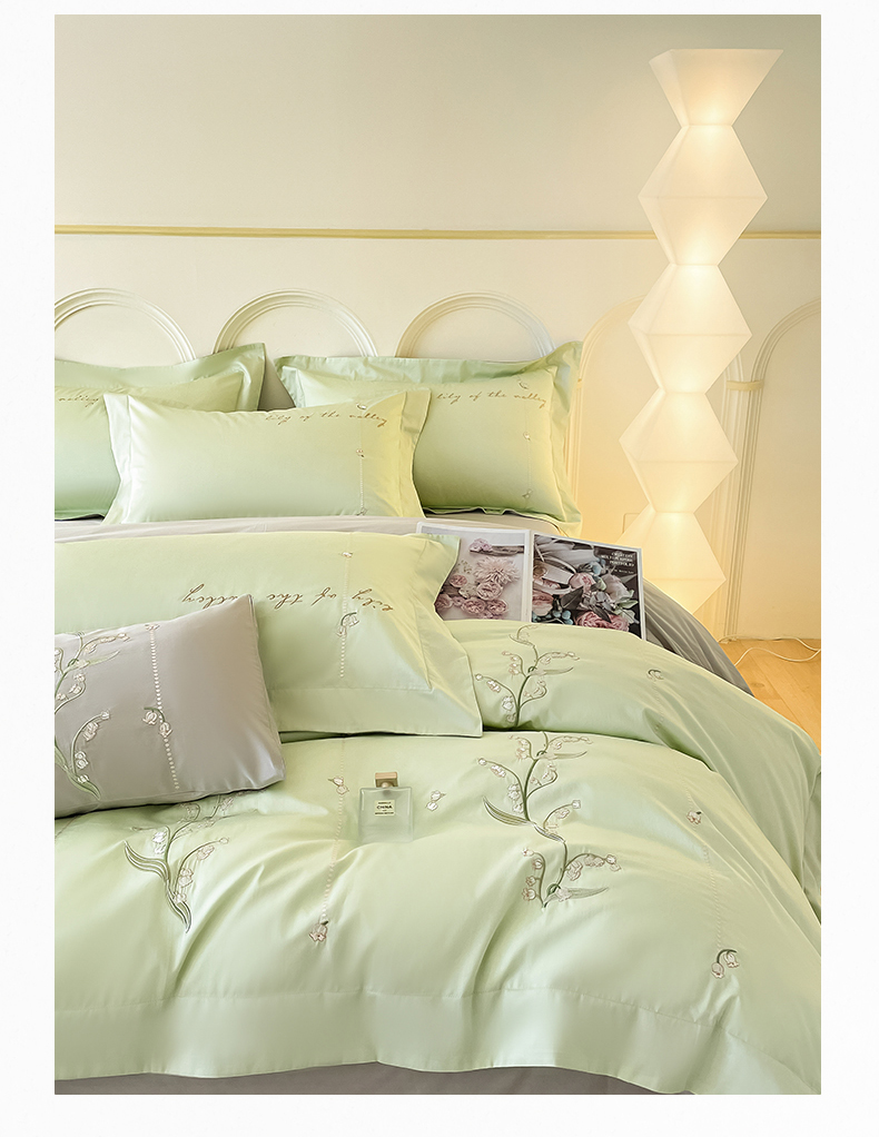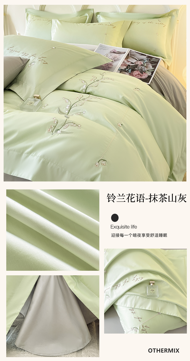 蓝米卡夫 2024新品-全棉铃兰花语刺绣宽边系列 铃兰花语-抹茶山灰