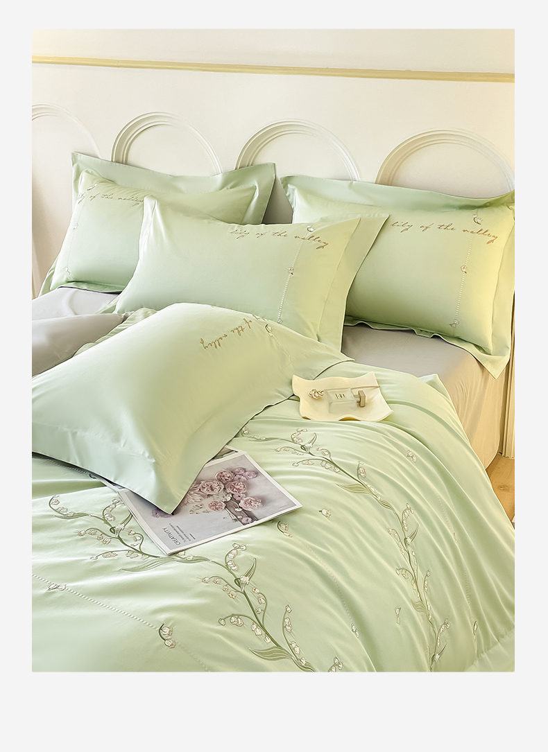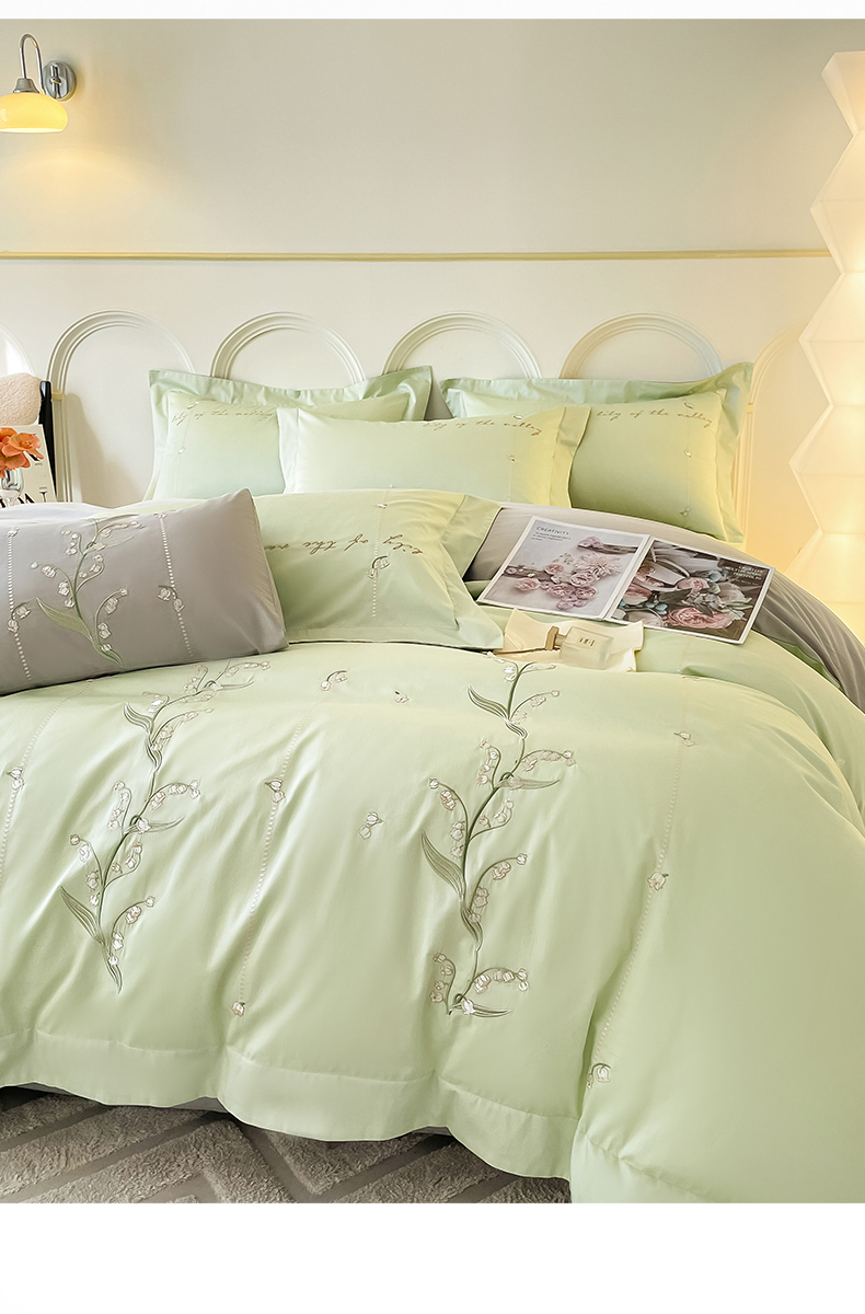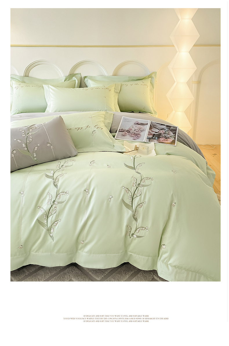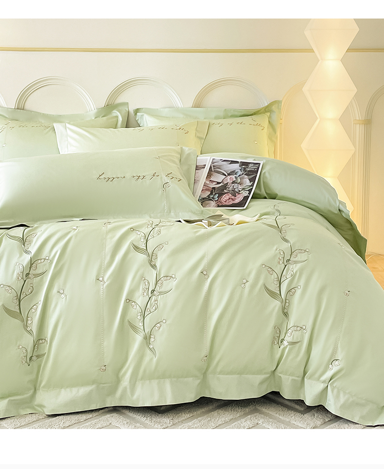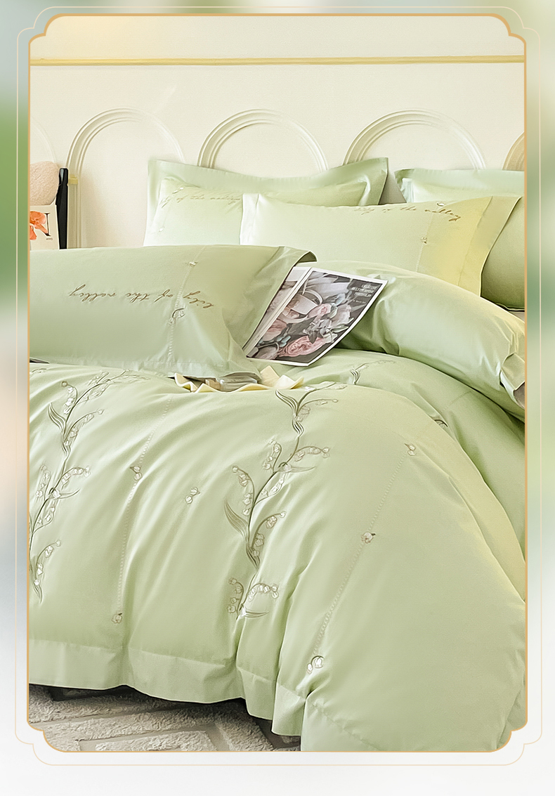蓝米卡夫 2024新品-全棉铃兰花语刺绣宽边系列 铃兰花语-抹茶山灰