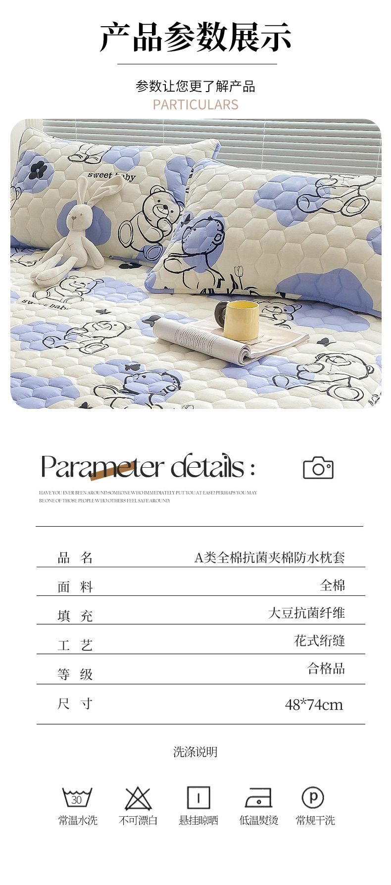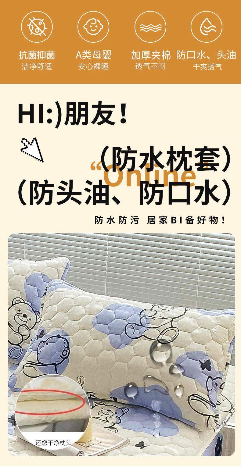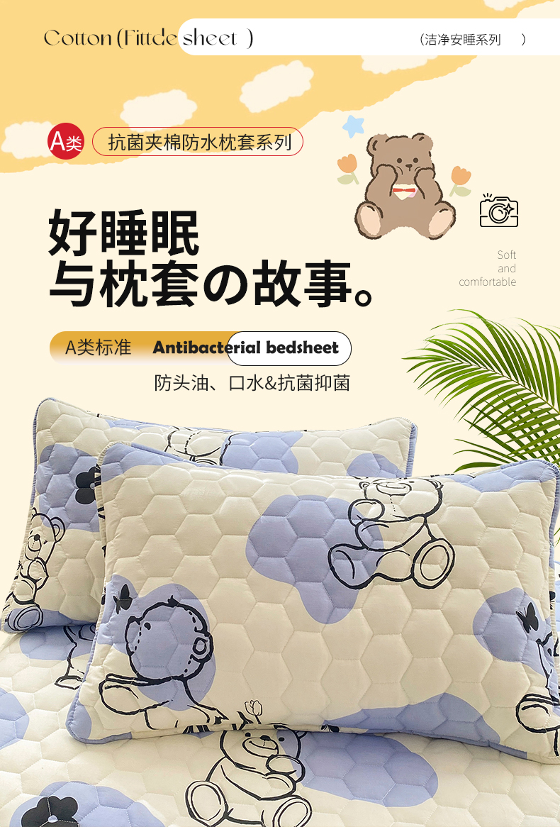 商品名称: 九亭家纺 2024新款全棉夹棉防口水防头油枕套 防水-奶油小熊