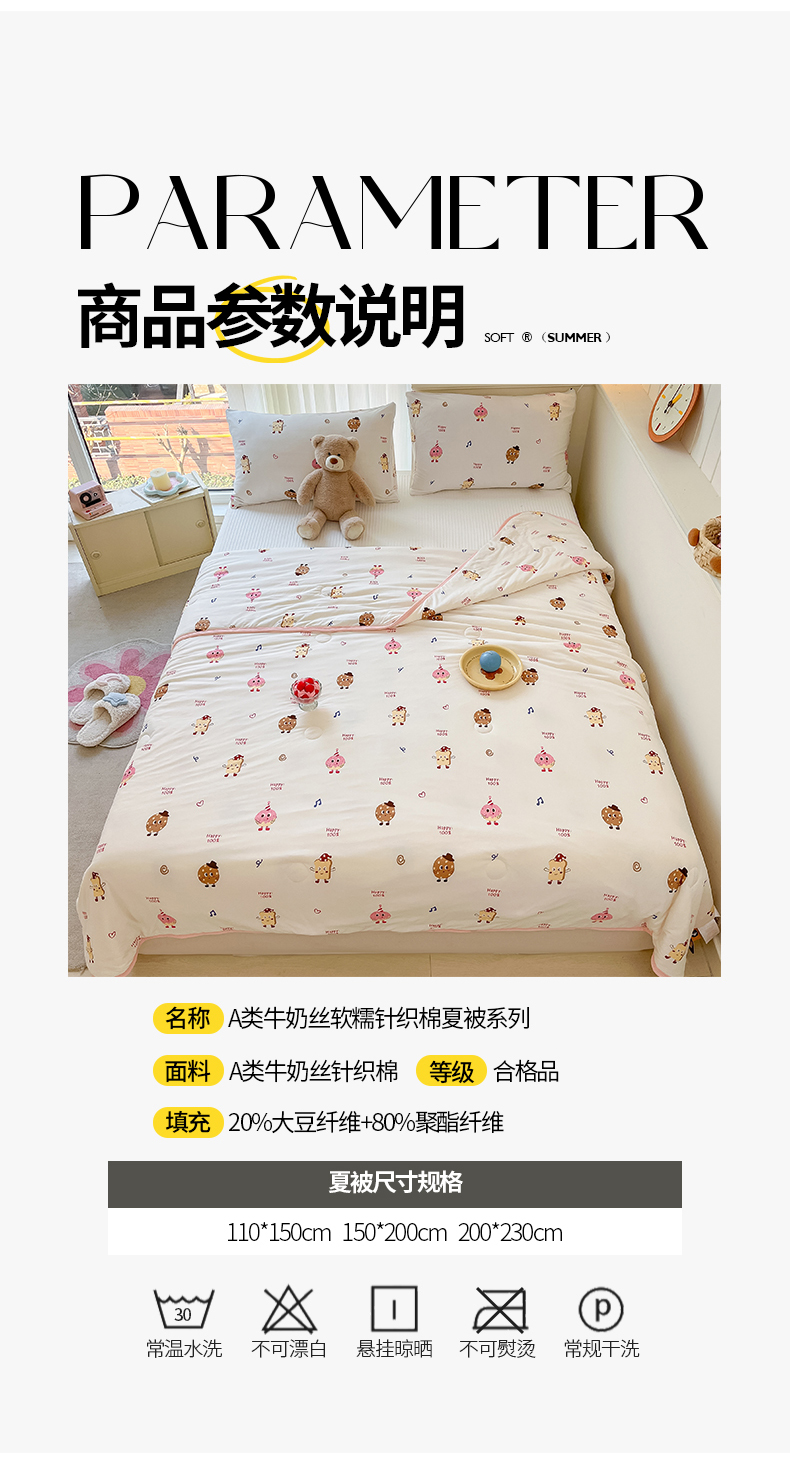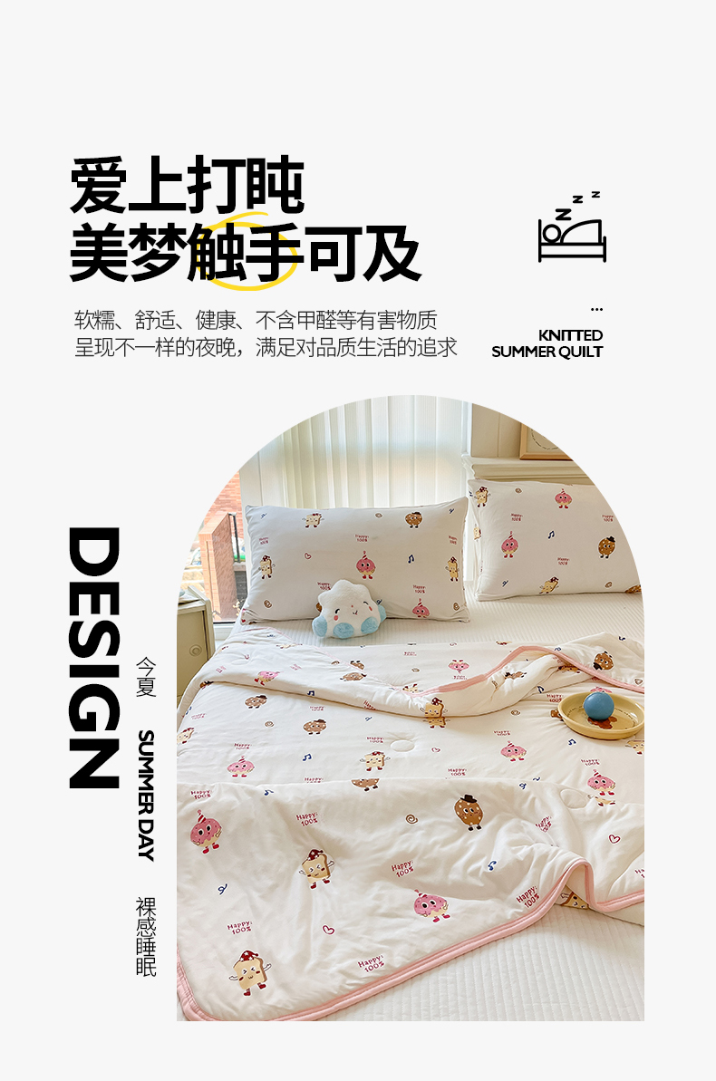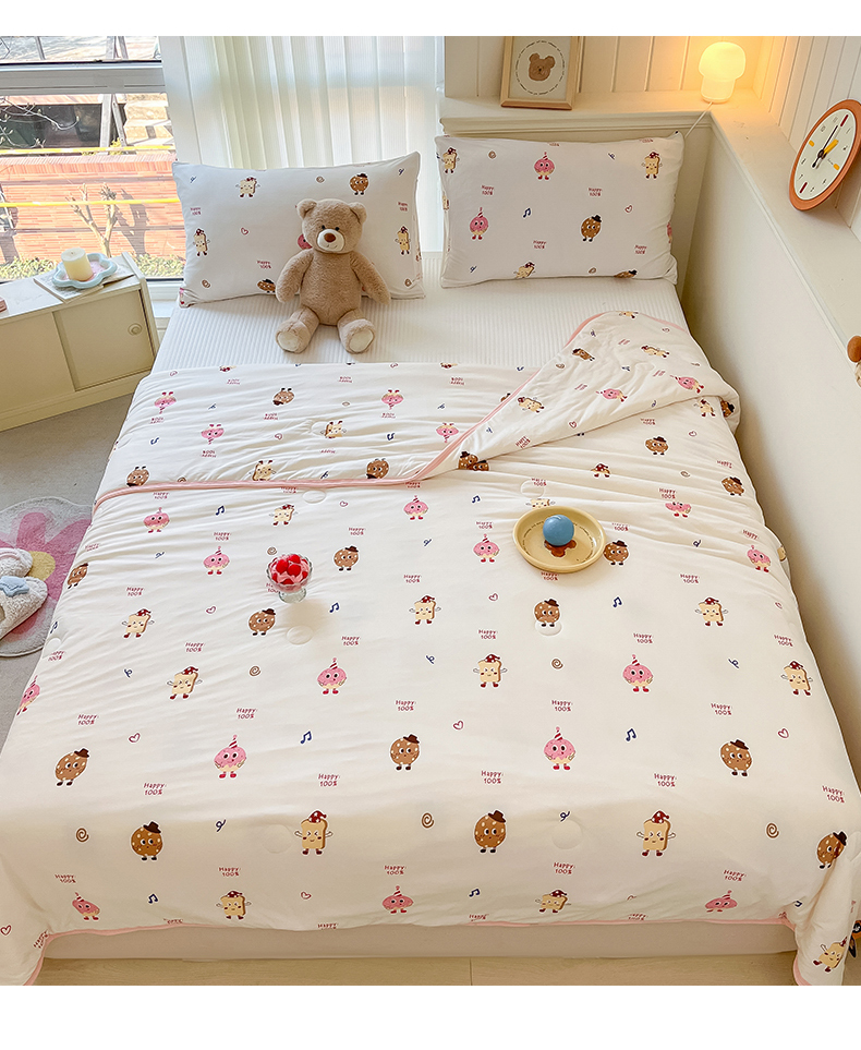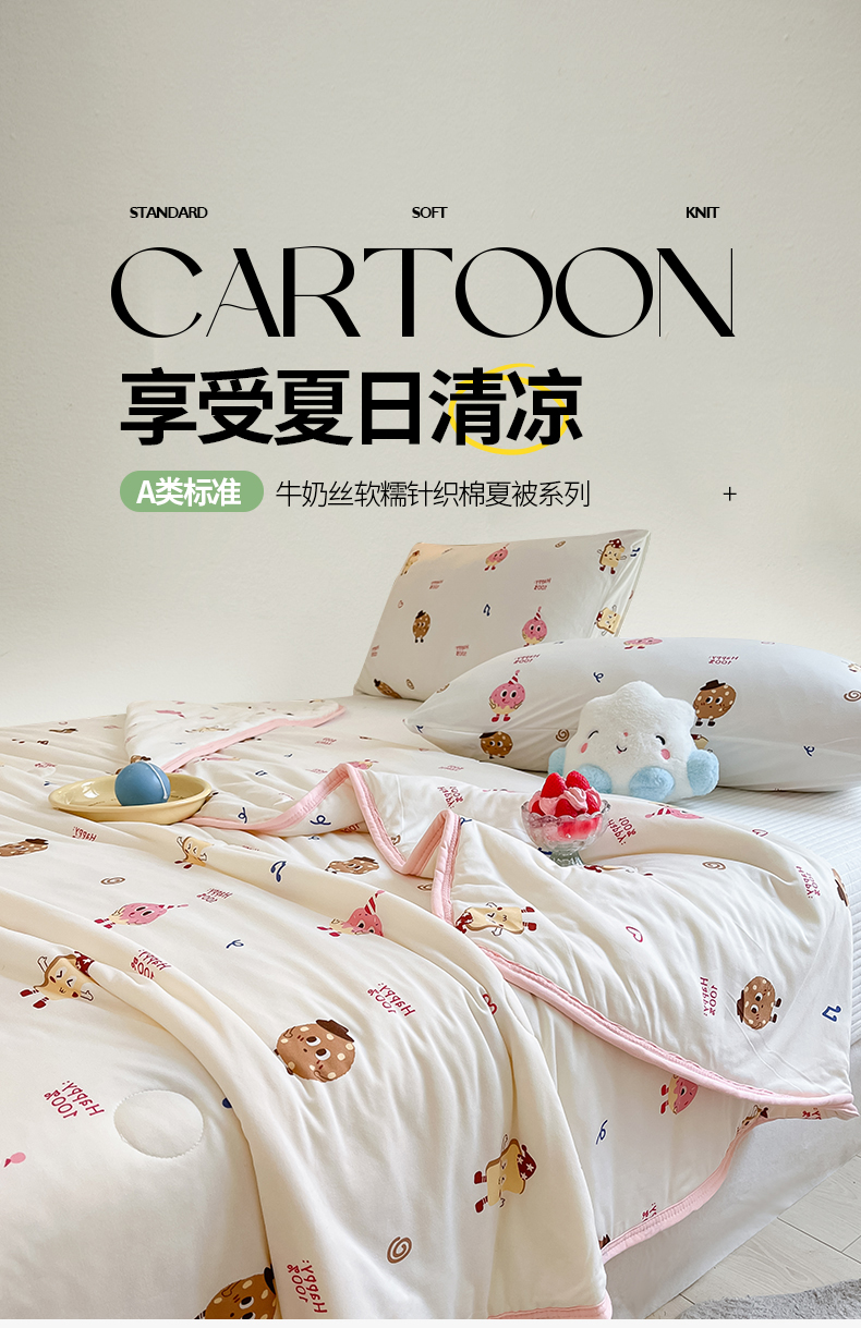 商品名称:桃子家居 2024新款A类高品质牛奶丝软糯针织棉夏被 针织棉-甜心饼干