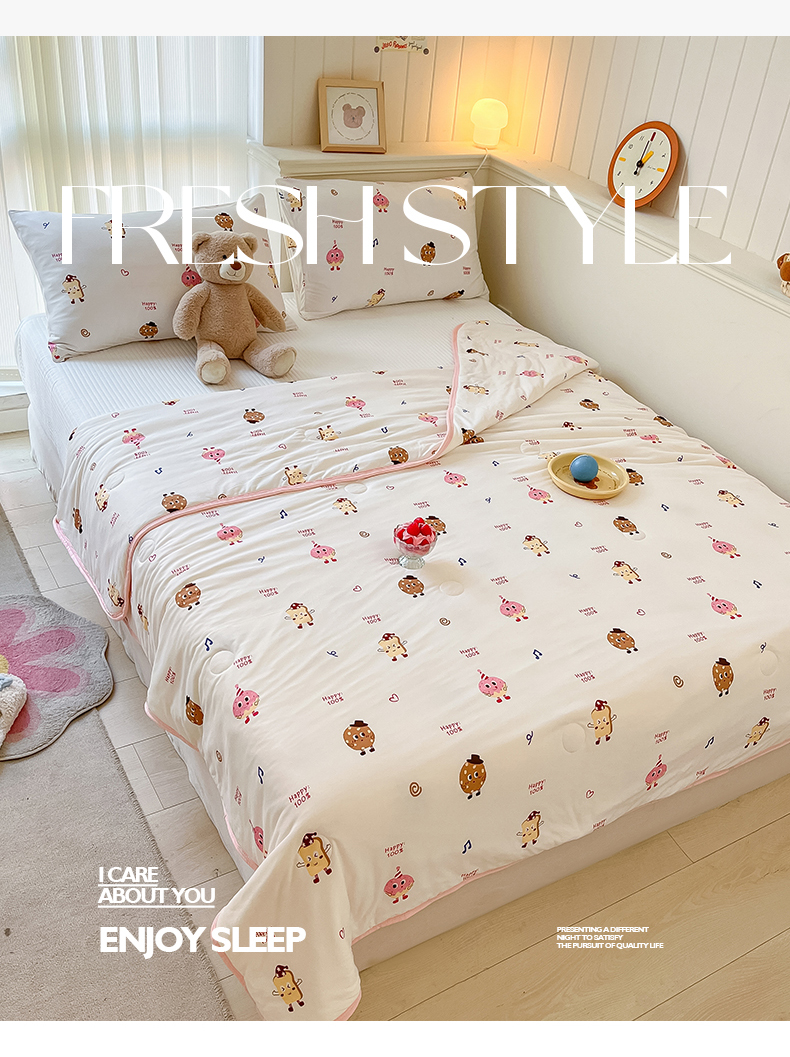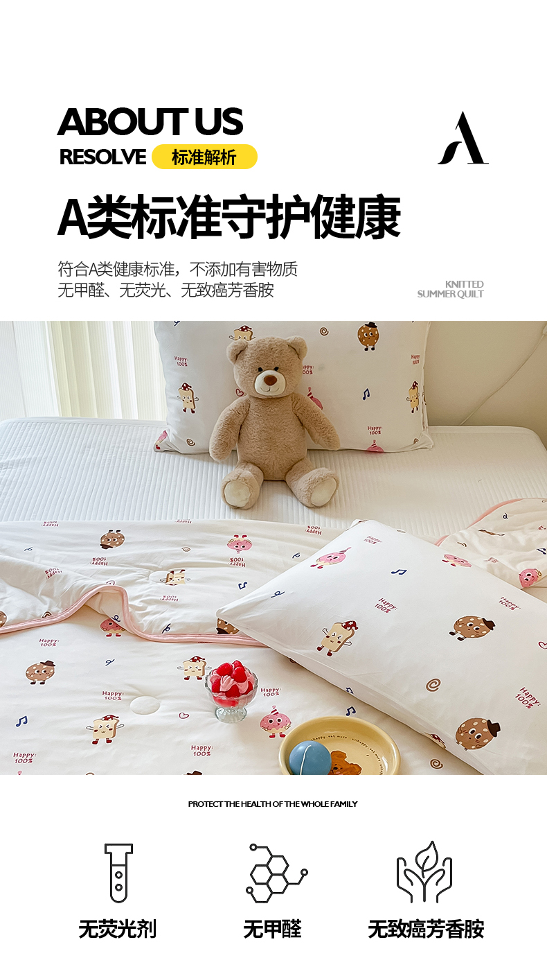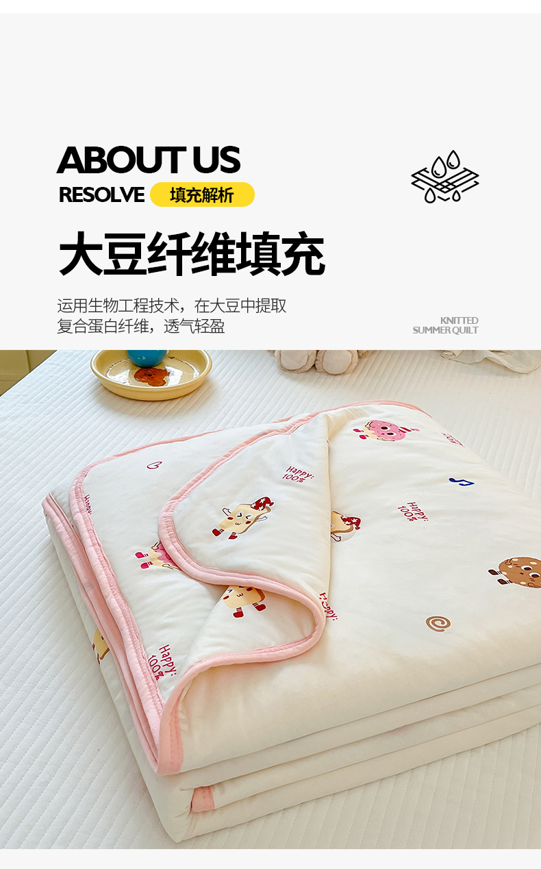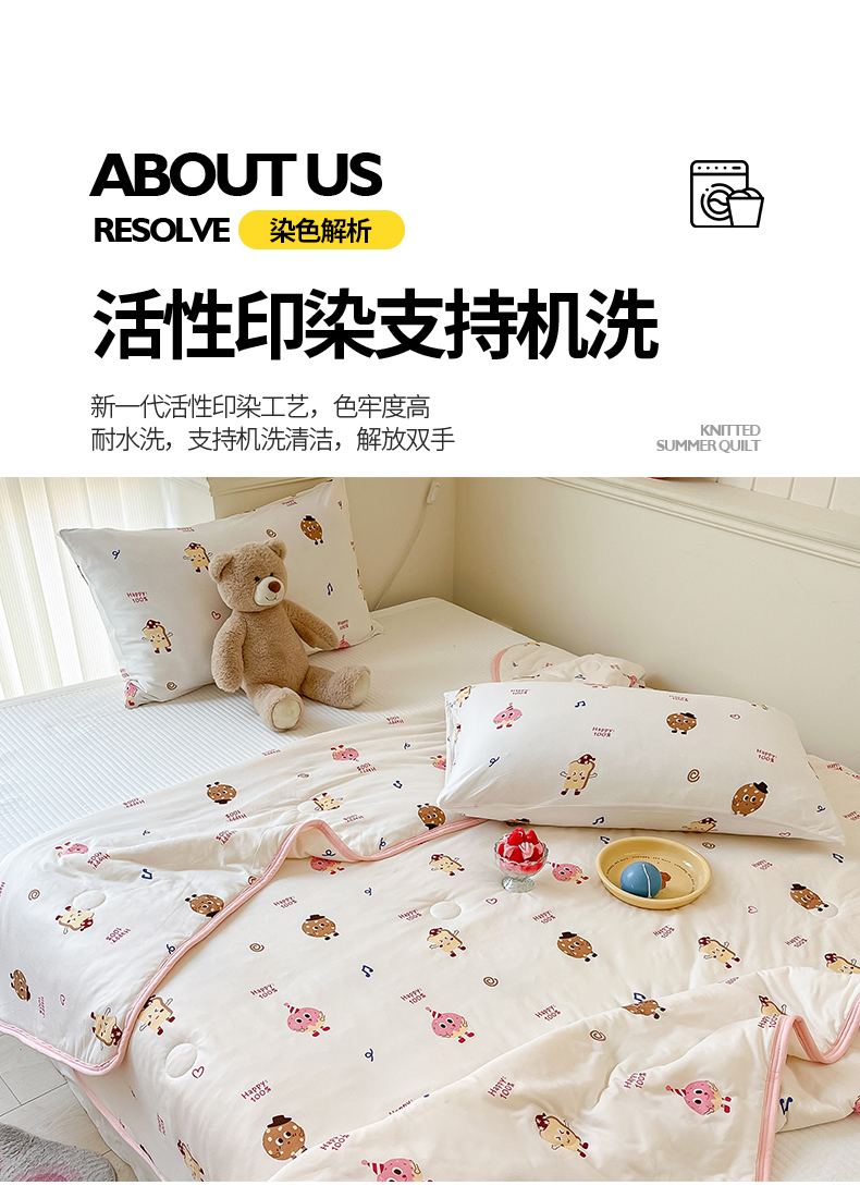 商品名称:桃子家居 2024新款A类高品质牛奶丝软糯针织棉夏被 针织棉-甜心饼干