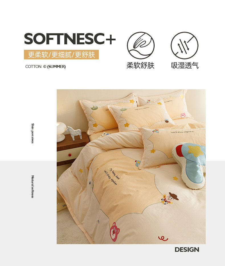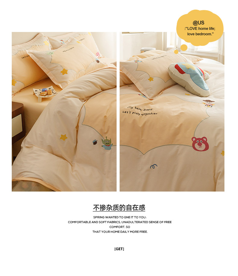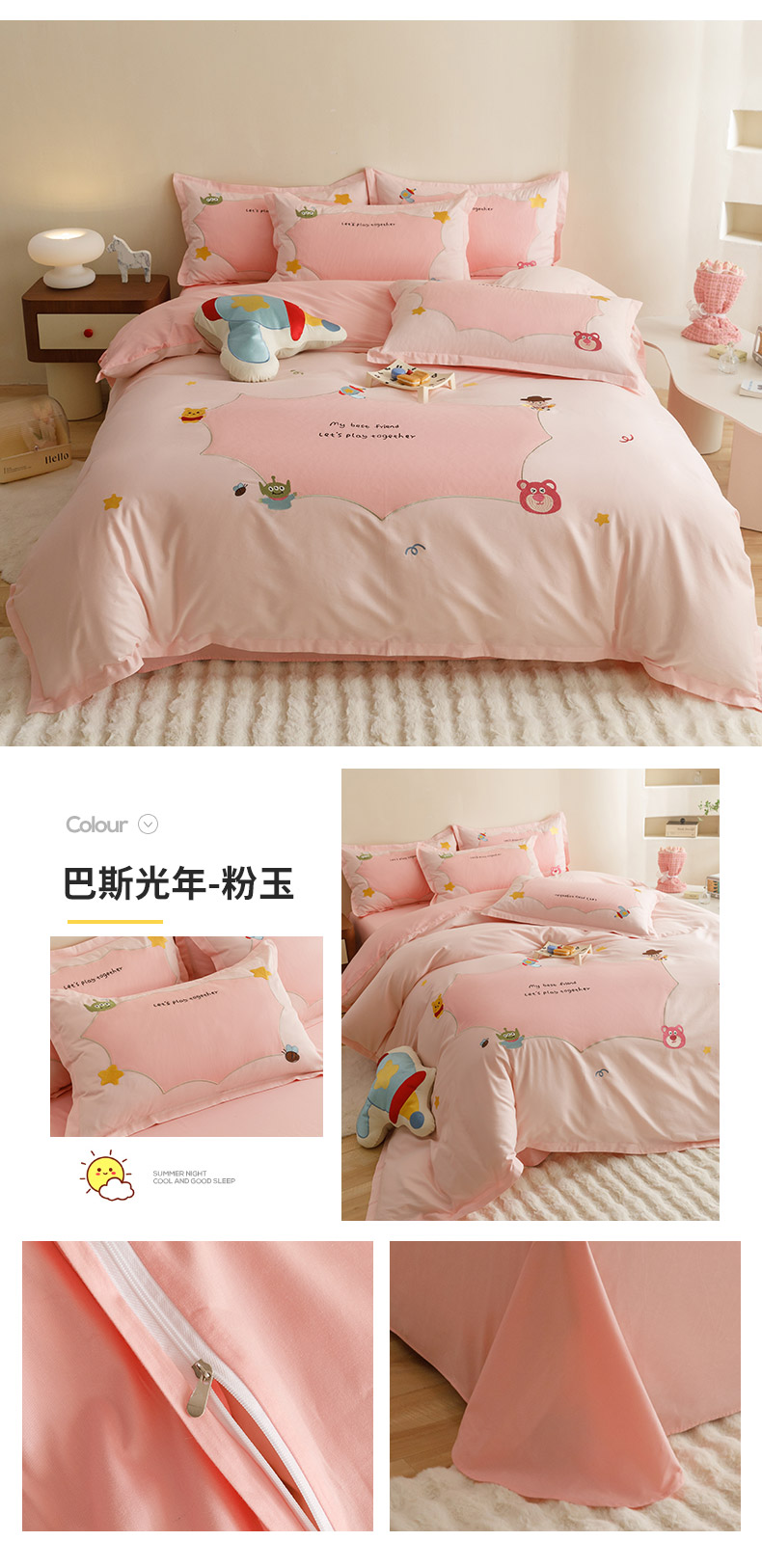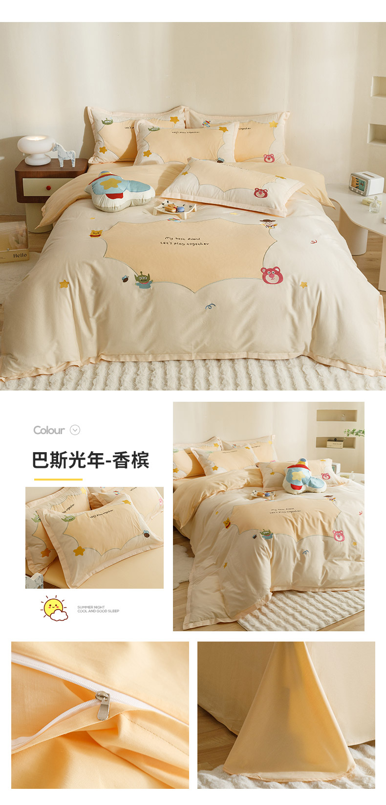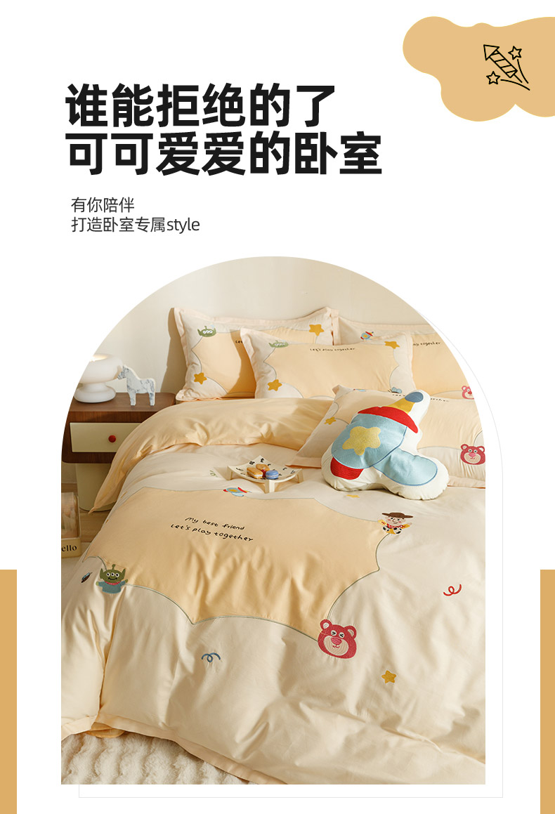 当前位置: 91家纺网 > 商品网购 > 床品套件 > 四件套 > 全棉普通四件套 > (总)欧冠家纺 2024新款全棉床笠绣花卡通刺绣四件套巴斯光年系列