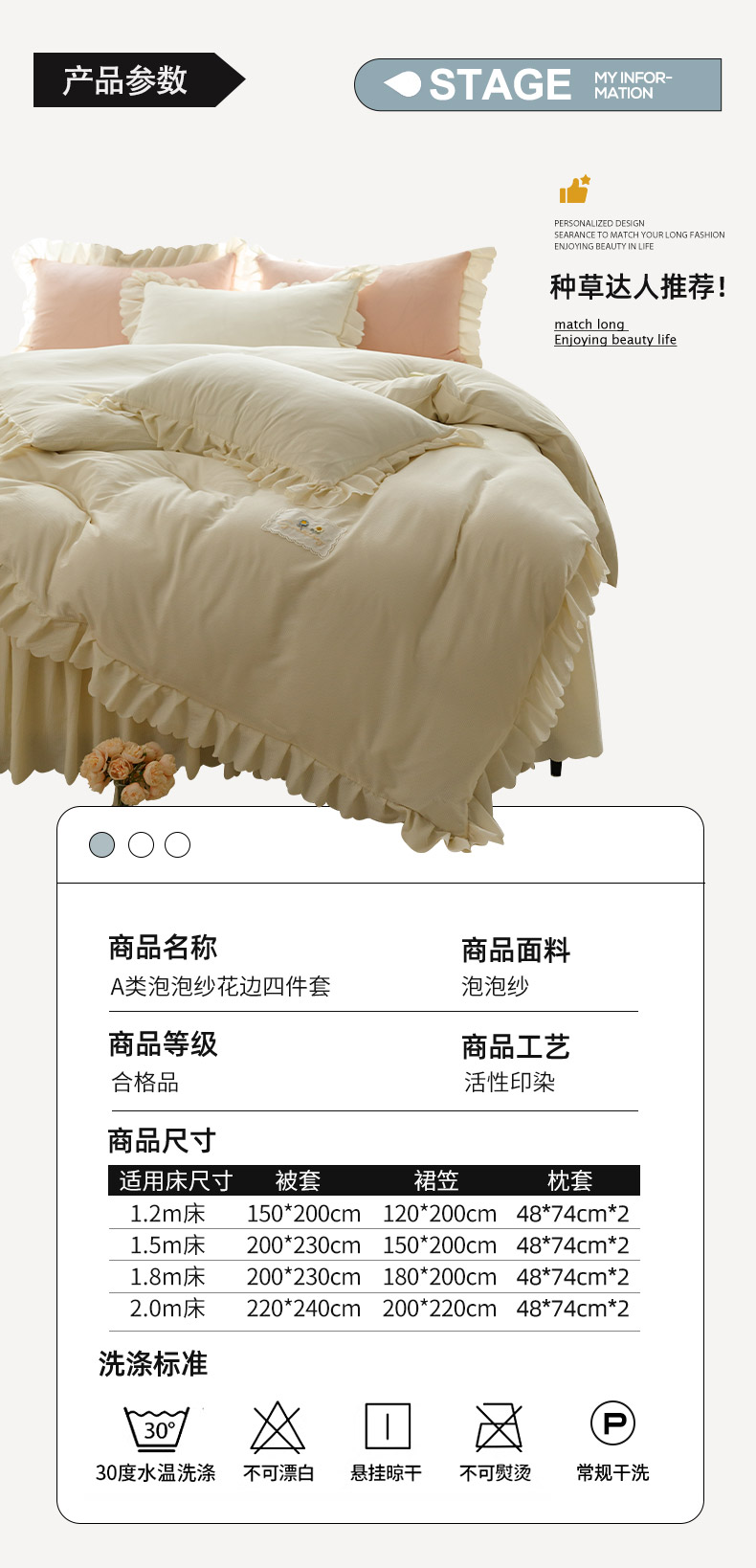 1.5床(被套200X230cm+裙笠150X200cm+枕套48X74cm*2) | ¥130.00 |