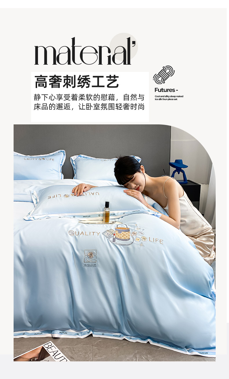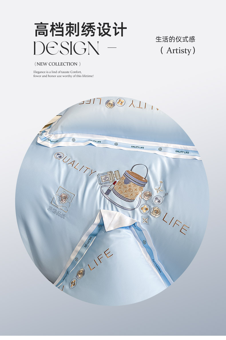 当前位置: 91家纺网 > 商品网购 > 床品套件 > 四件套 > 真丝四件套 > 绒世界 绒世界 2025新款大牌风60S水洗真丝刺绣床笠被套四件套香奈系列 香奈-风铃蓝