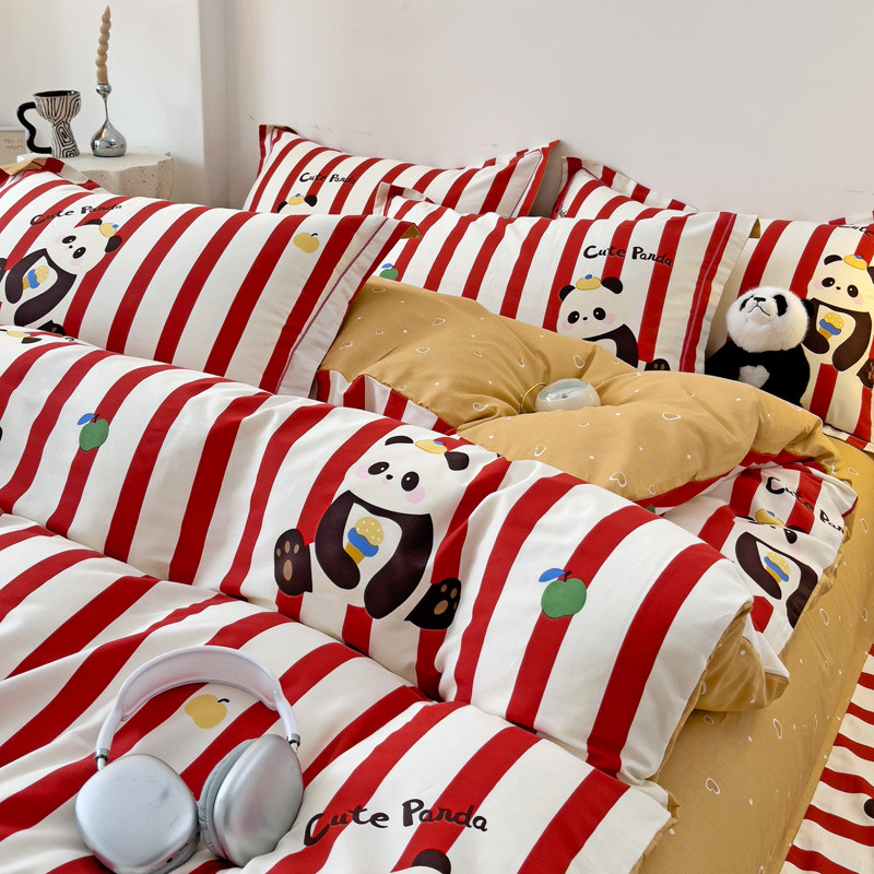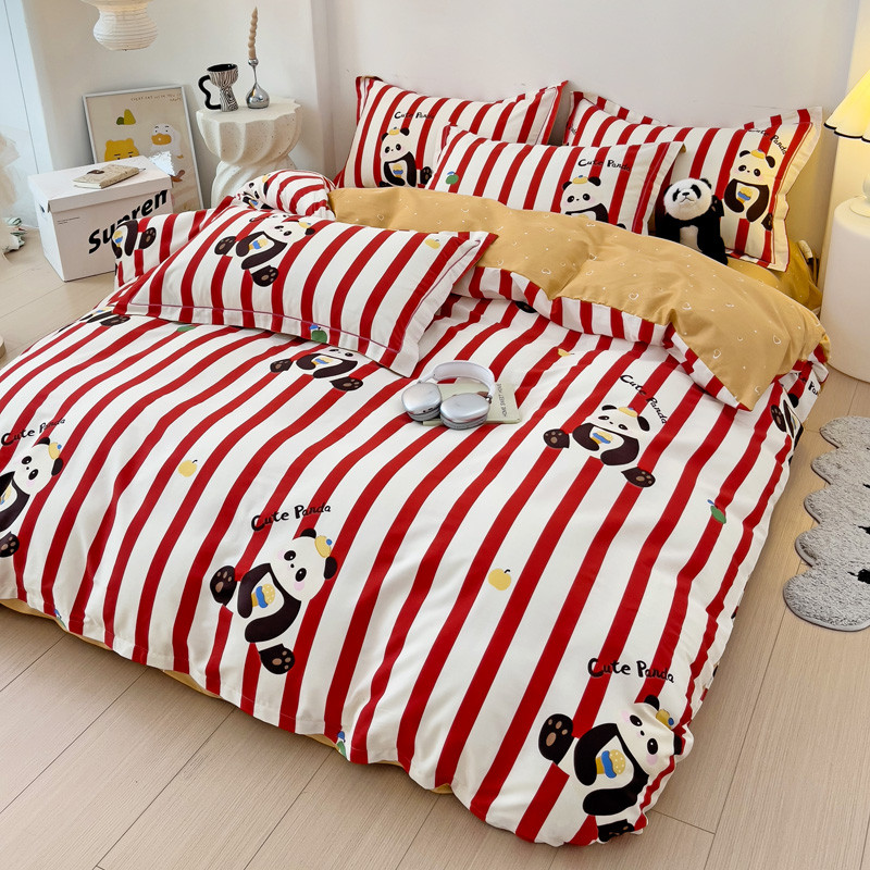 商品名称:乐童2024新款直播爆款13070纯棉印花吊边款一字绣四件套 熊猫家族