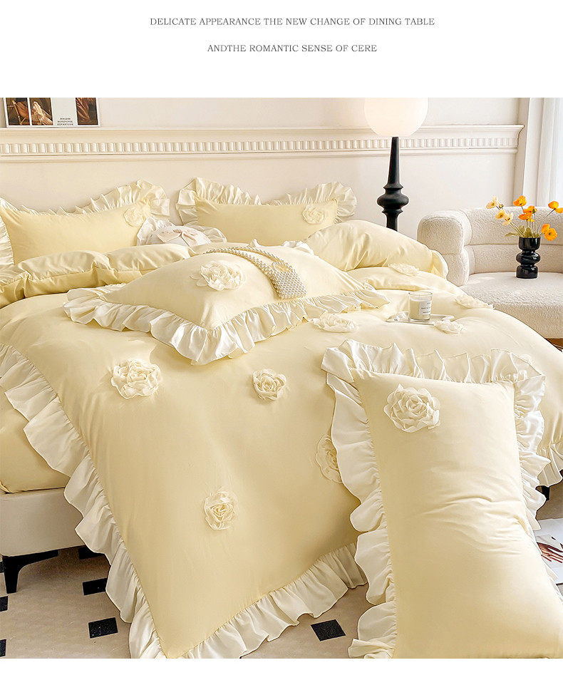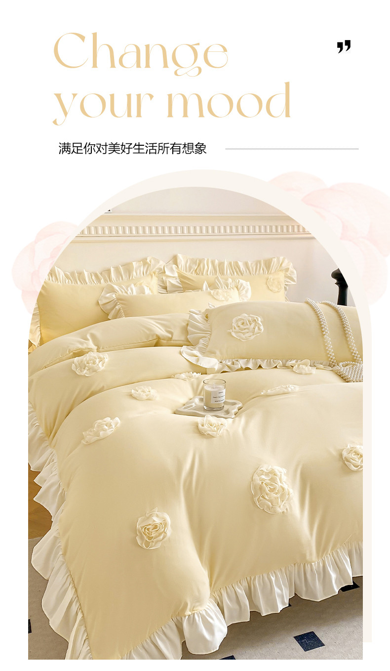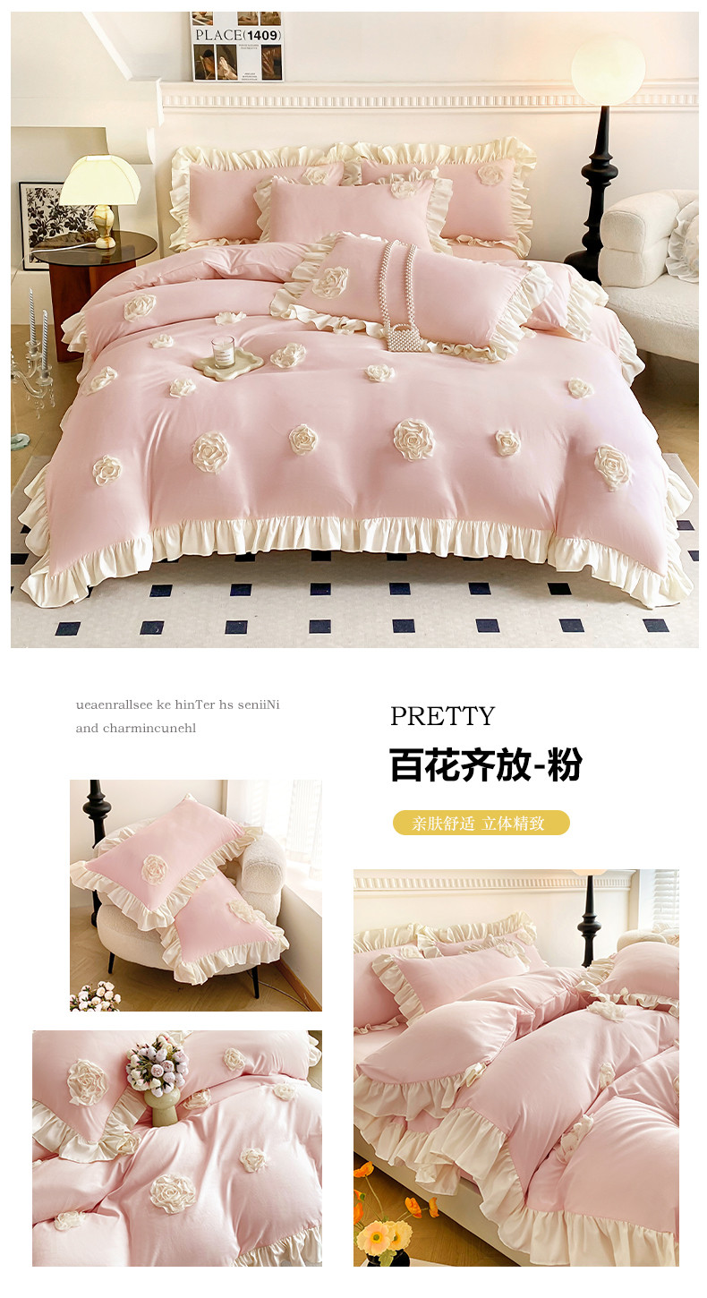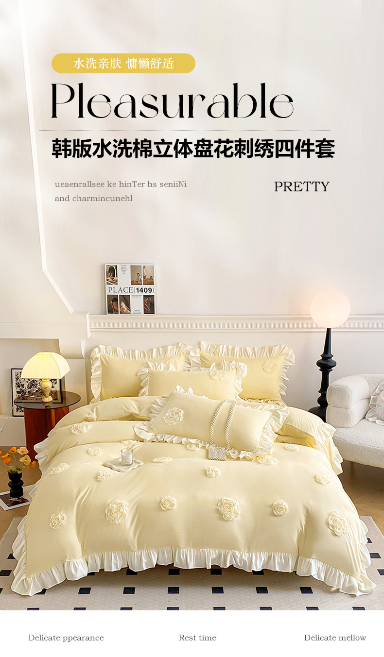 (总)富盛家纺 2024新款水洗亲肤棉立体盘花刺绣四件套公主风四件套