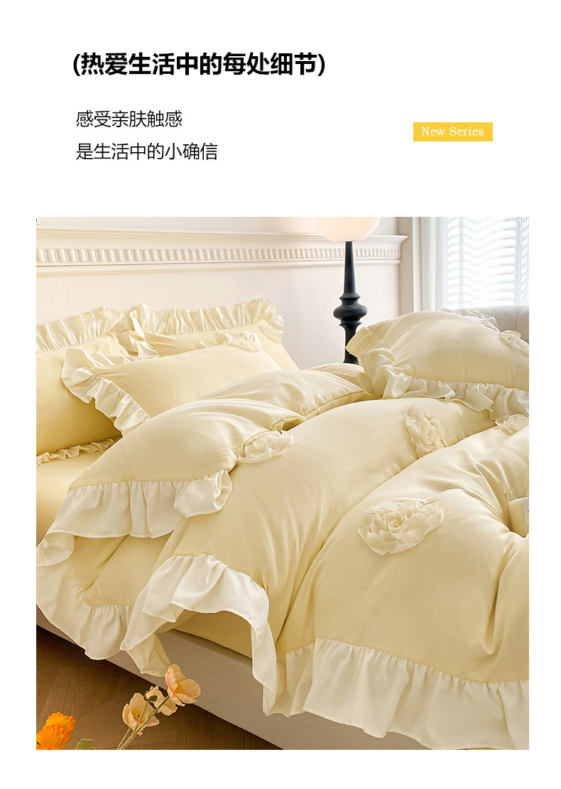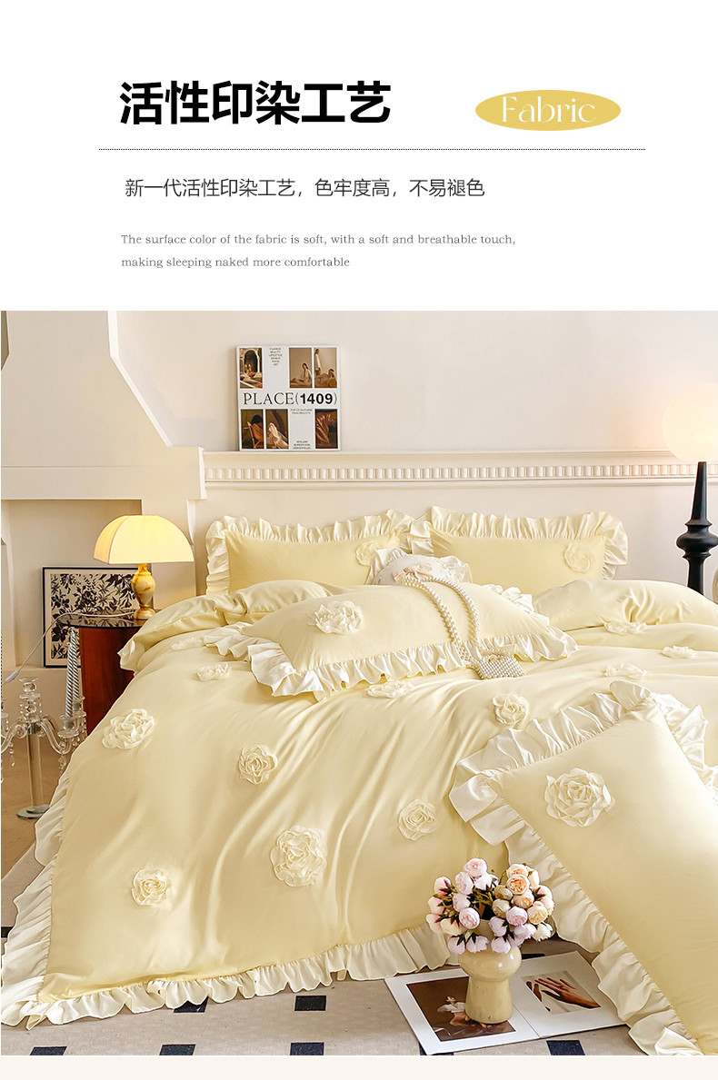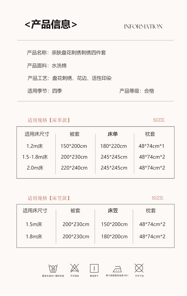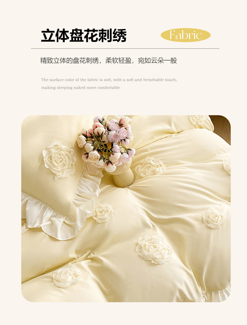 商品名称:(总)富盛家纺 2024新款水洗亲肤棉立体盘花刺绣四件套公主风四件套