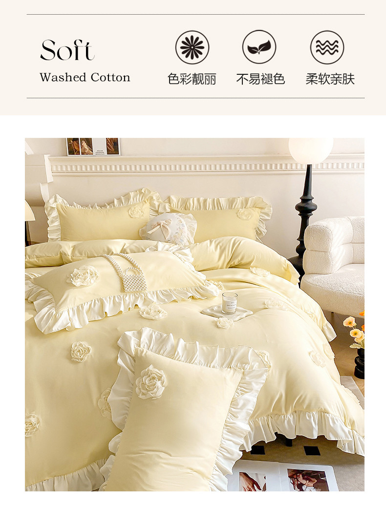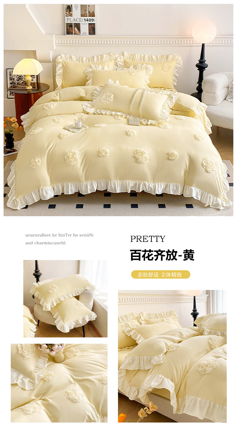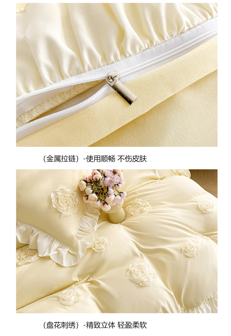 (总)富盛家纺 2024新款水洗亲肤棉立体盘花刺绣公主风四件套,伊莉莎—粉,伊莉莎—白,伊莉莎—紫,伊莉莎—黄,伊莉莎—浅绿,伊莉莎—蓝,伊莉莎—豆沙,伊莉莎—嫩绿