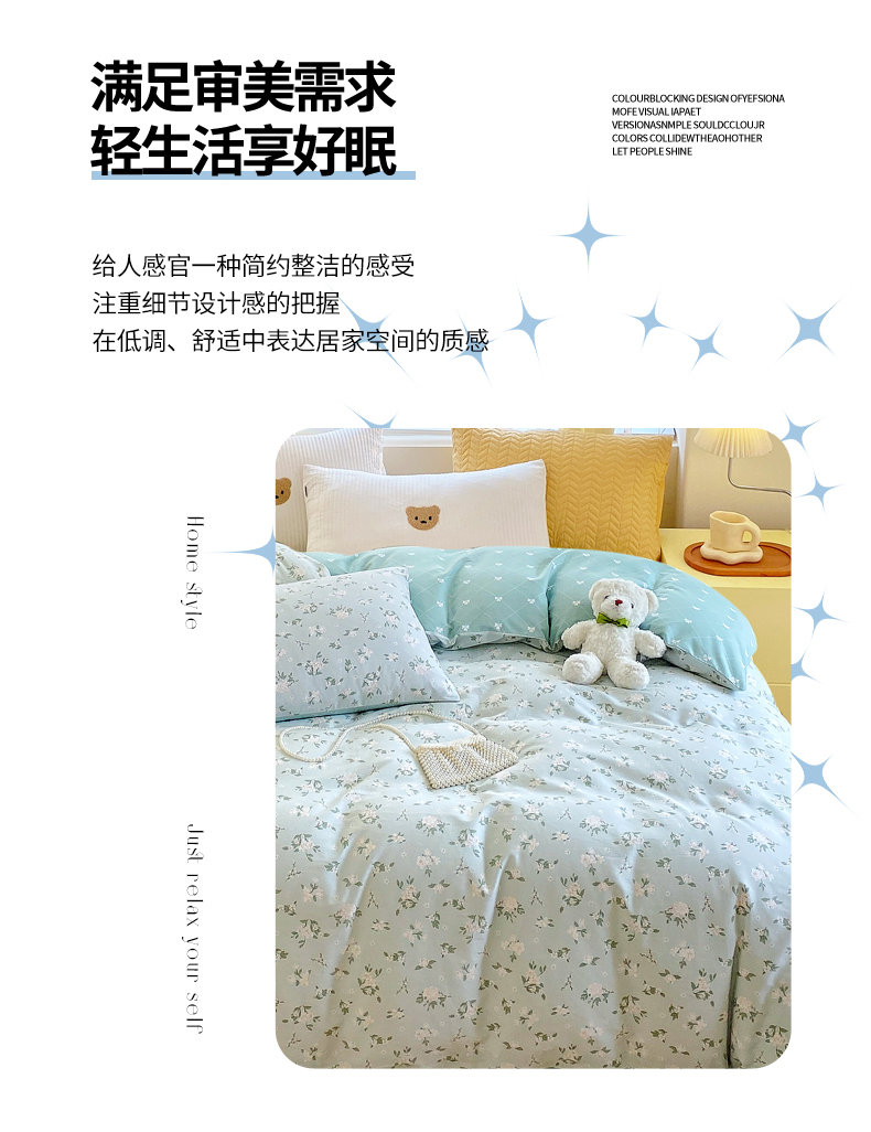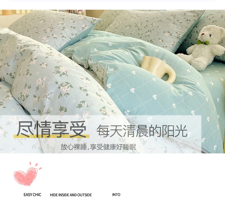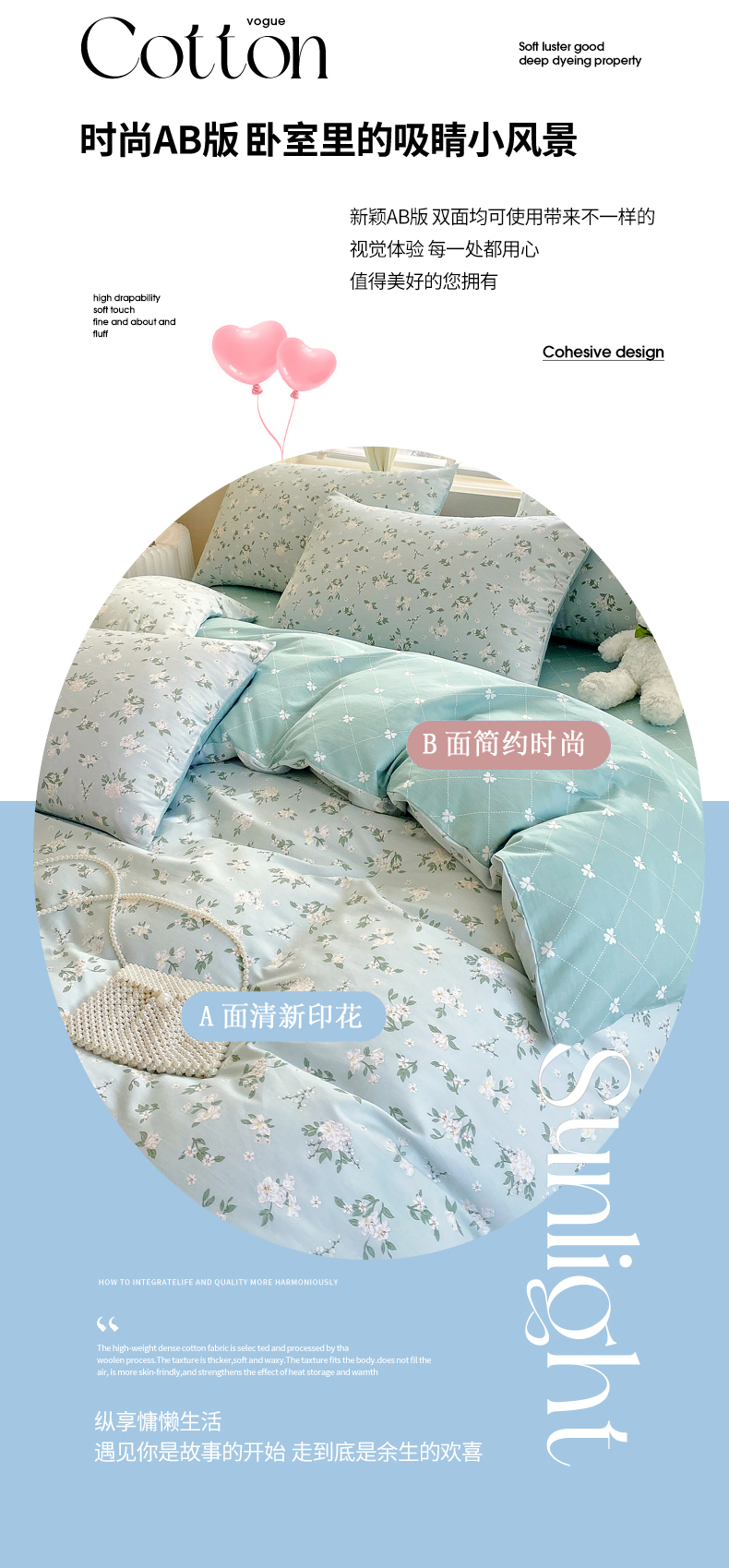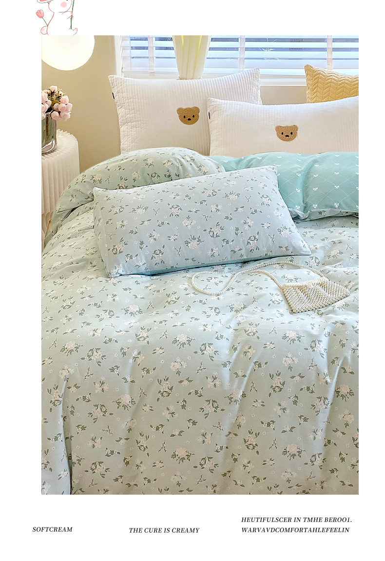 商品名称:洺兰 2025年全棉喷气印花四件套纯棉床单床笠款小清新花卉北欧风--单被套 夏茶