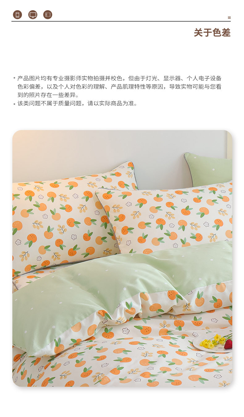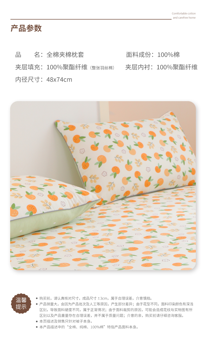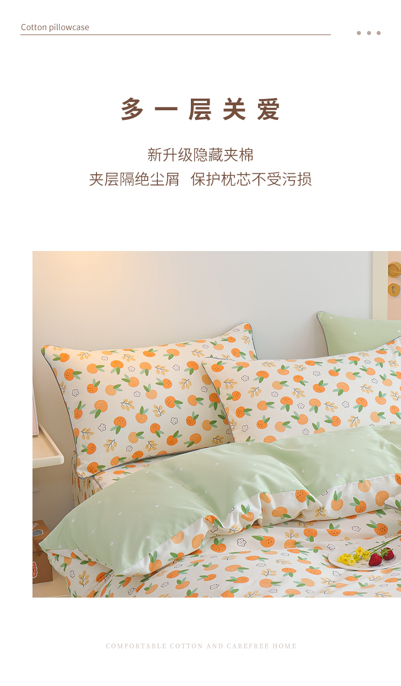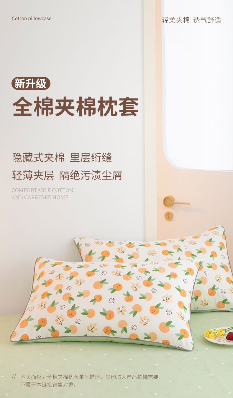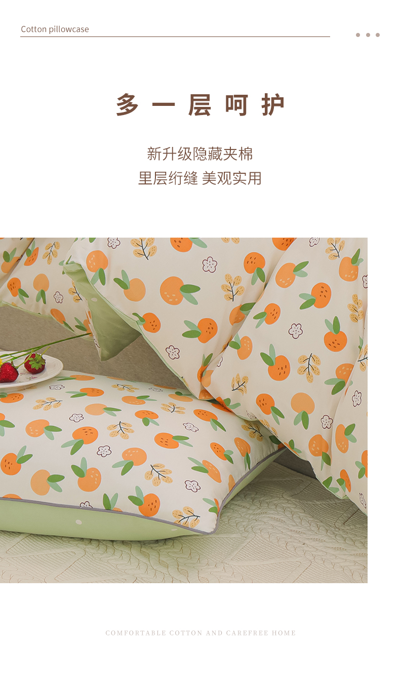 商品名称:元元 2024新款小清新隐藏式夹棉套件单品-夹棉枕套 果实