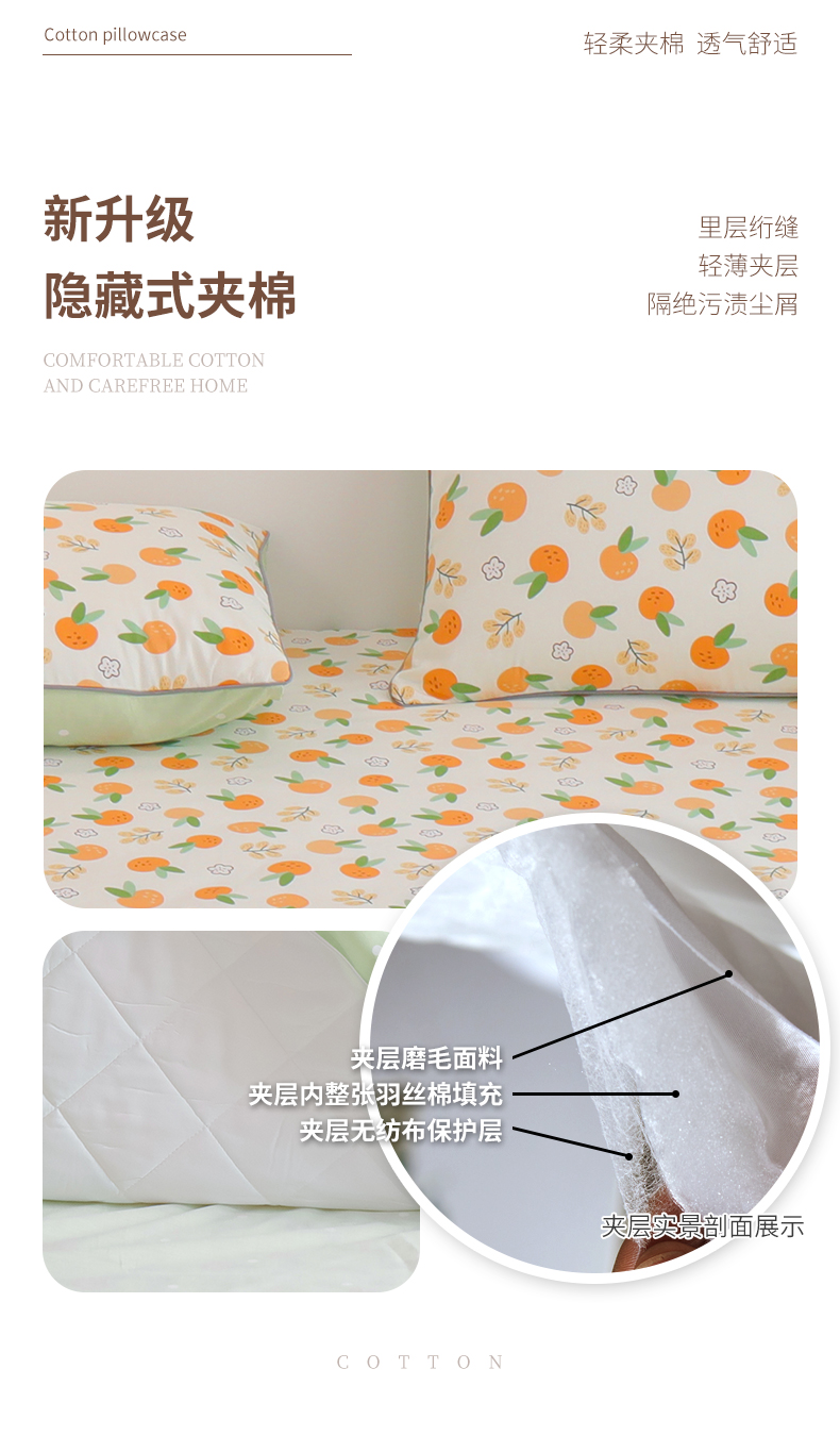 元元 2024新款小清新隐藏式夹棉套件单品-夹棉枕套 果实