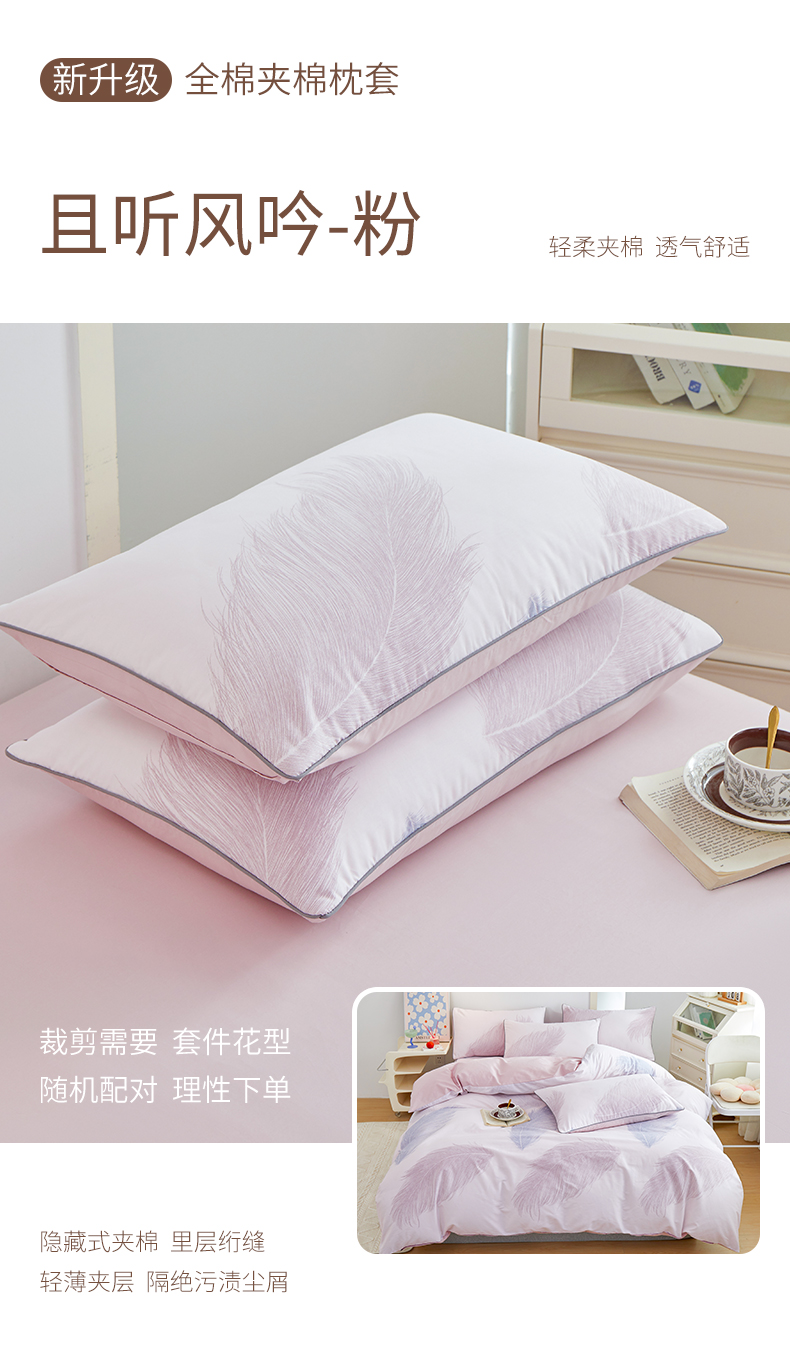 商品名称:元元 2024新款小清新隐藏式夹棉套件单品-夹棉枕套 且听风吟-粉