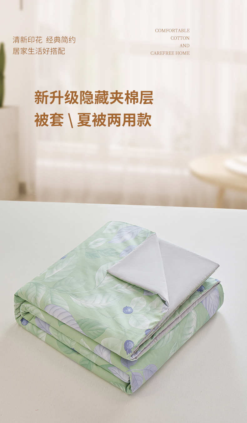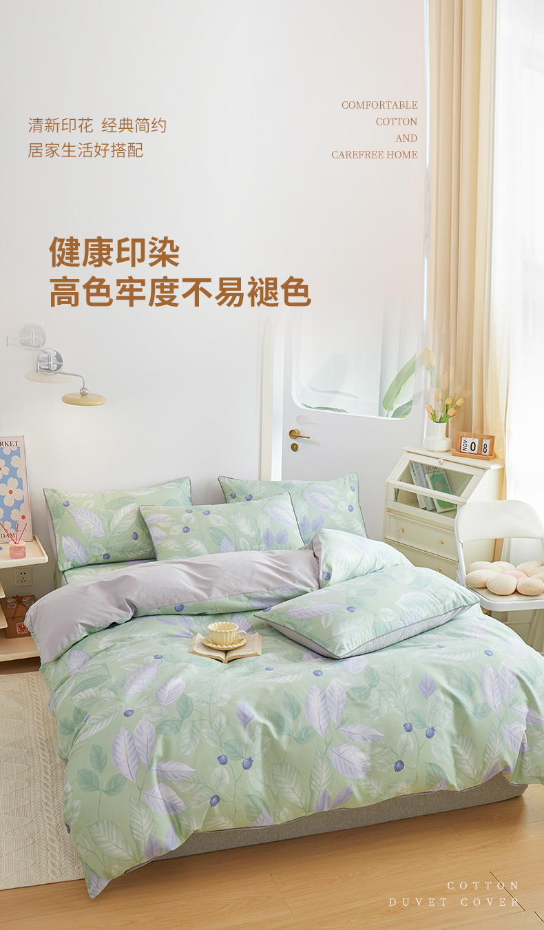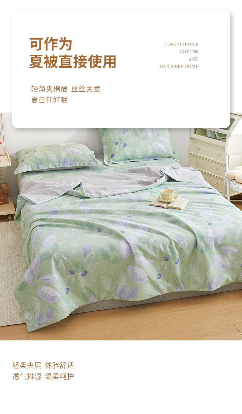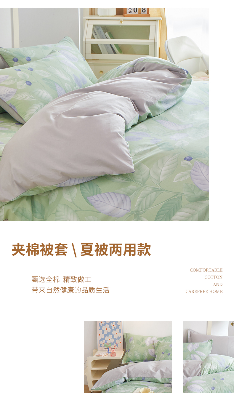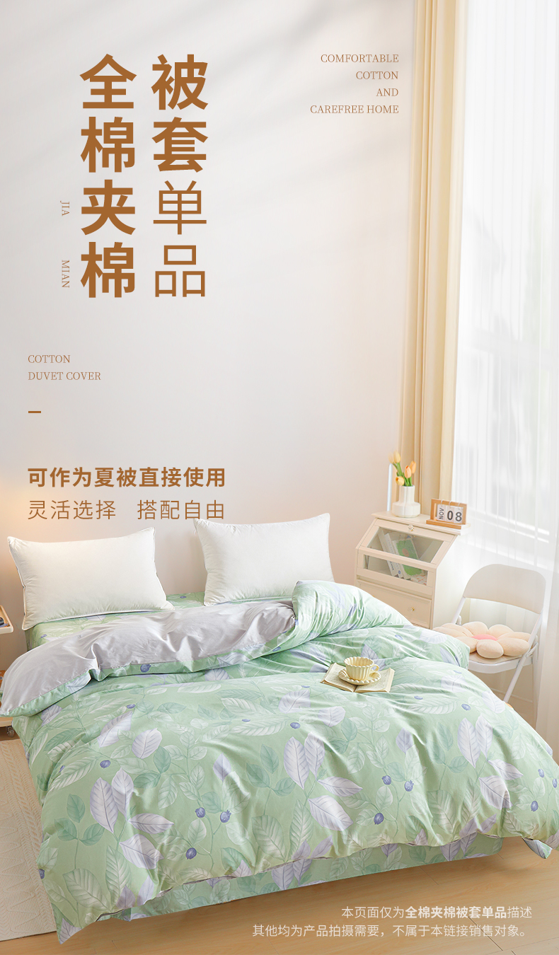 商品名称:元元 2024新款小清新隐藏式夹棉套件单品-夹棉被套 淡然若尘-绿