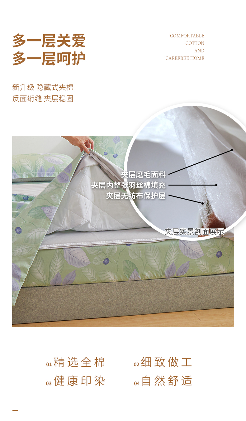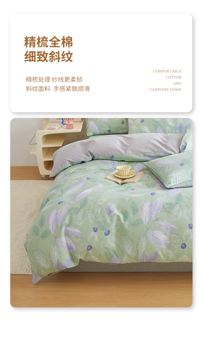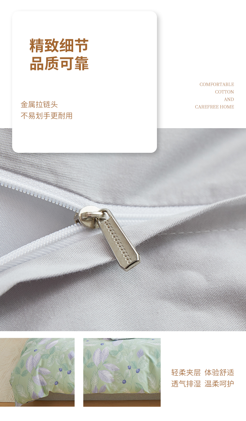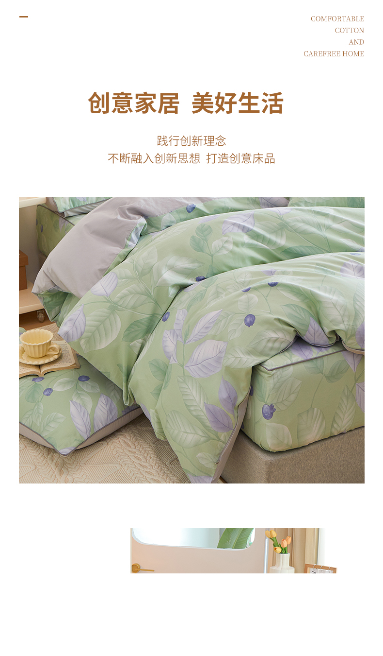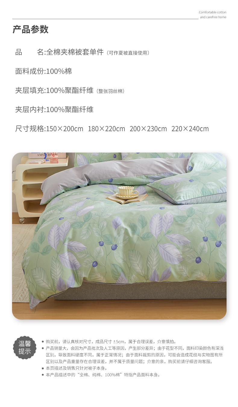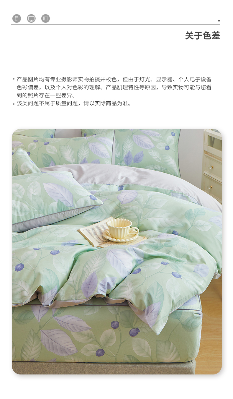 商品名称:元元 2024新款小清新隐藏式夹棉套件单品-夹棉被套 淡然若尘-绿