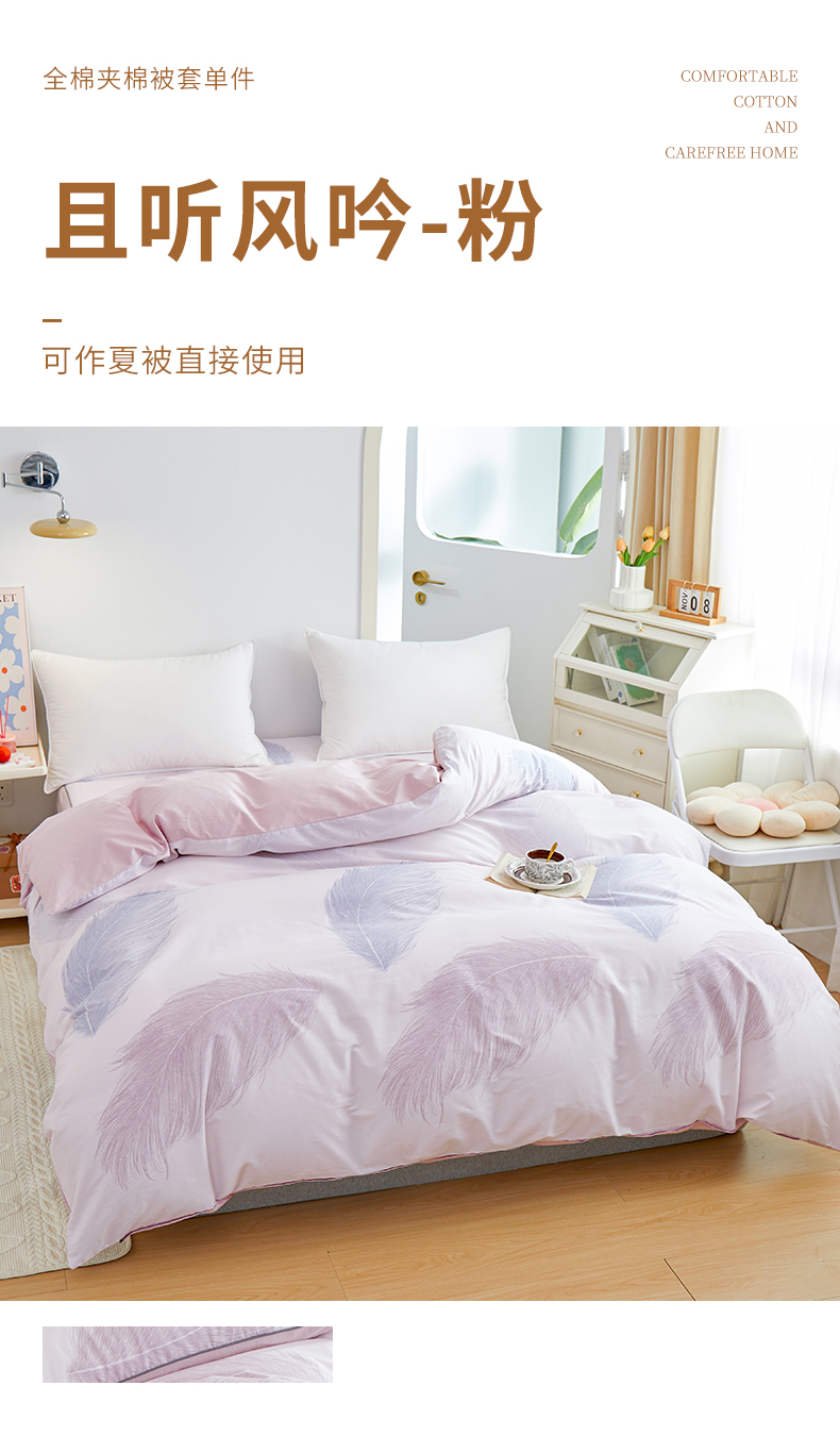 商品名称:元元 2024新款小清新隐藏式夹棉套件单品-夹棉被套 且听风吟-粉