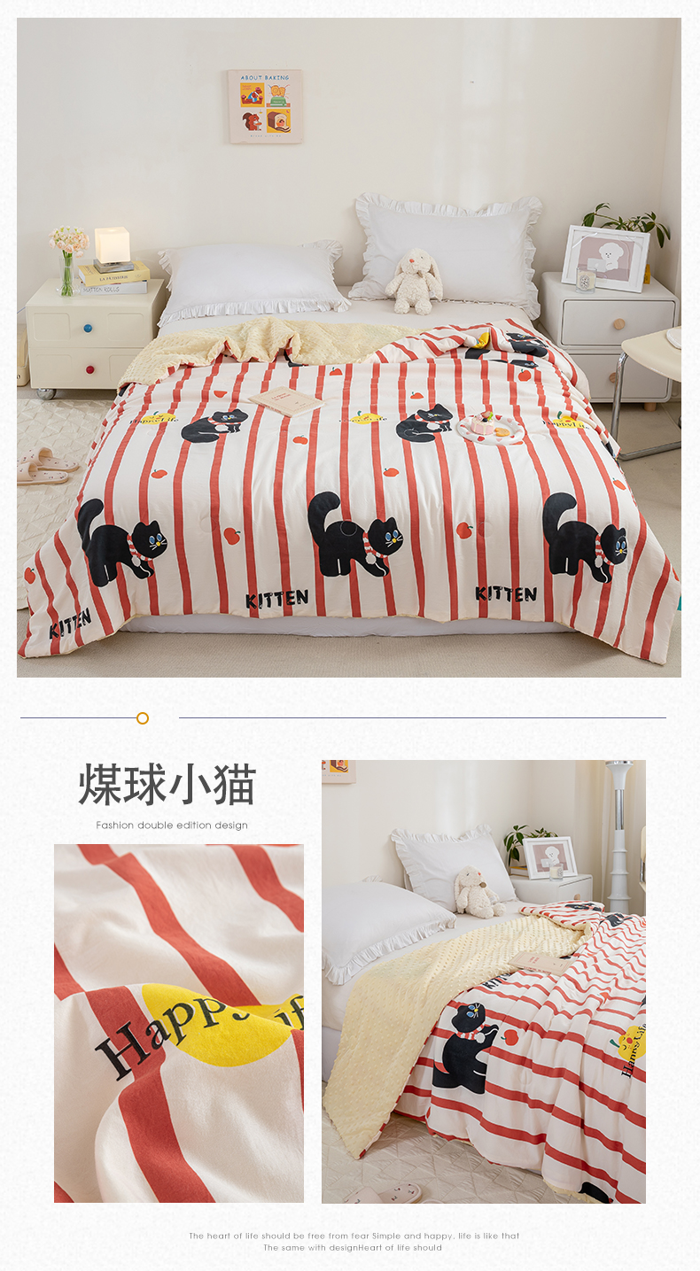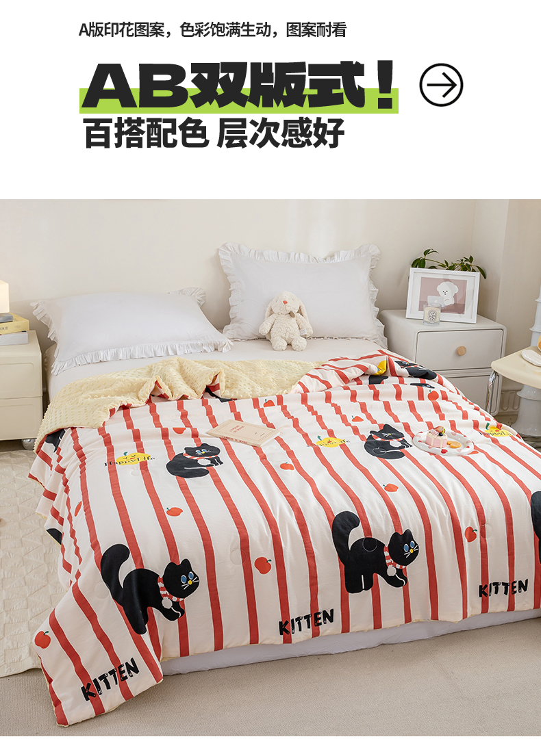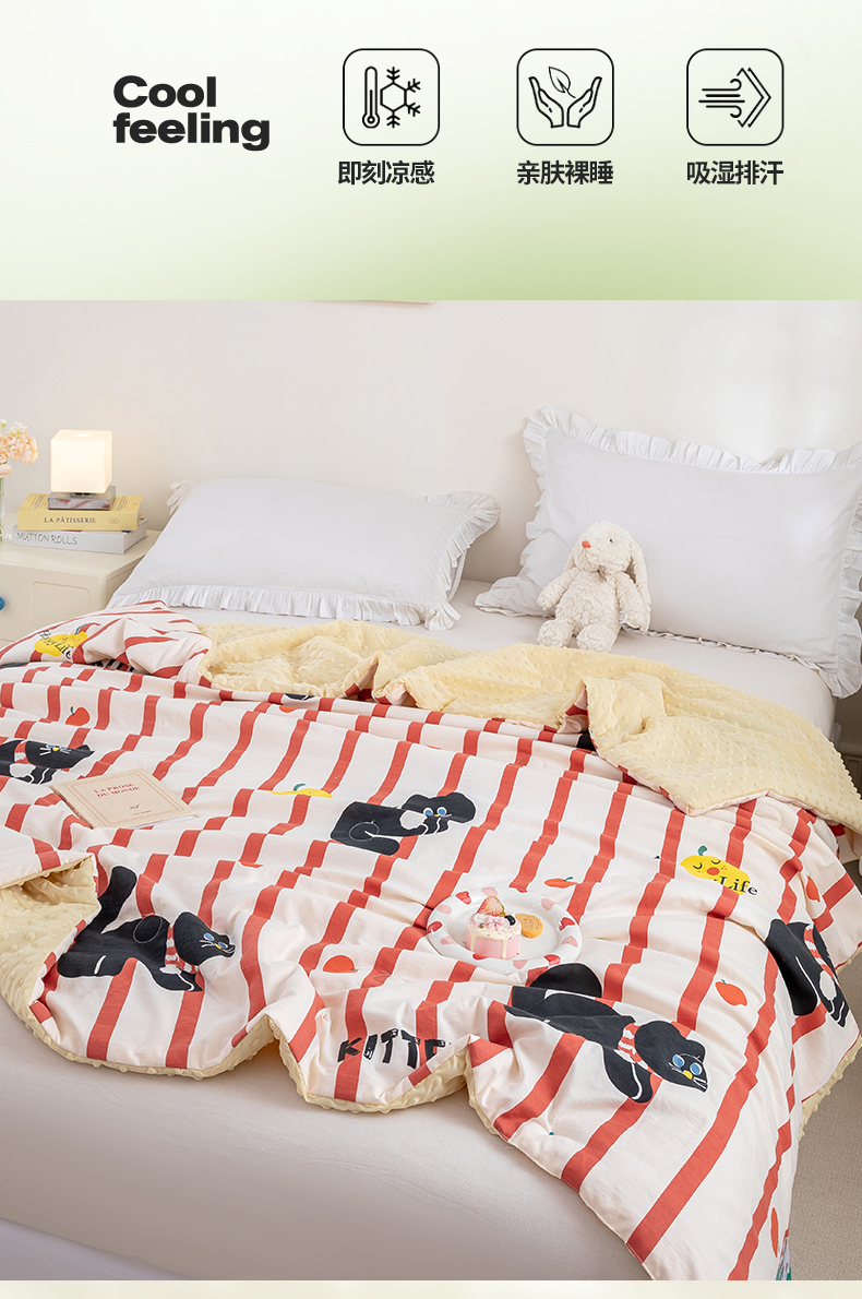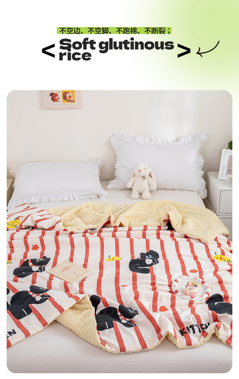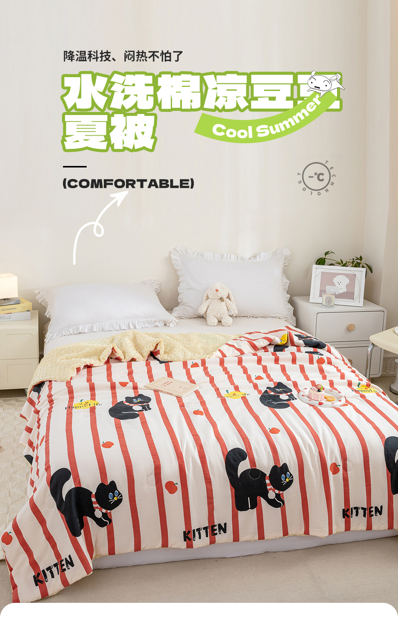 商品名称:芯元素 2024新款A类水洗棉凉豆豆夏被 煤球小猫