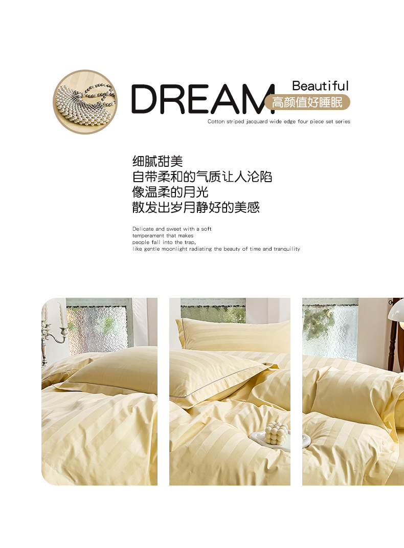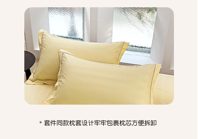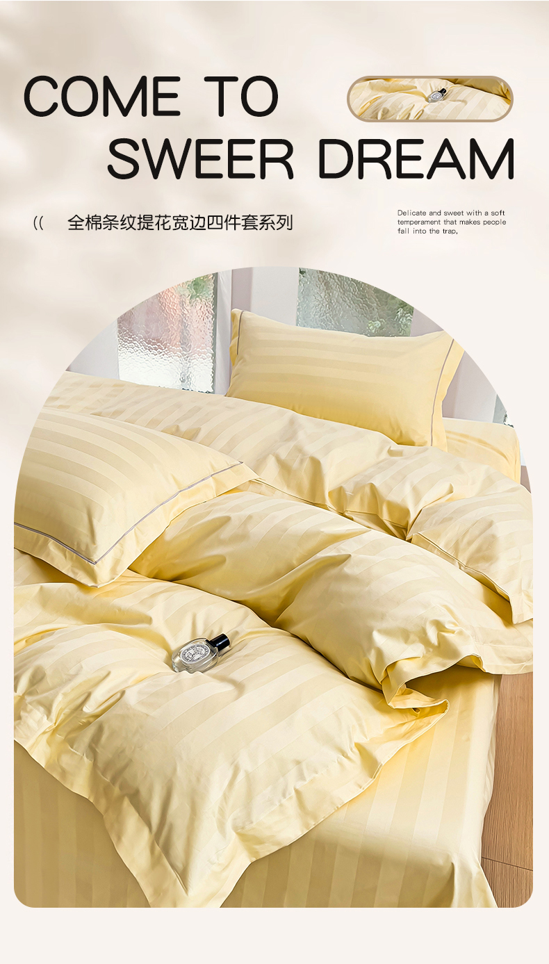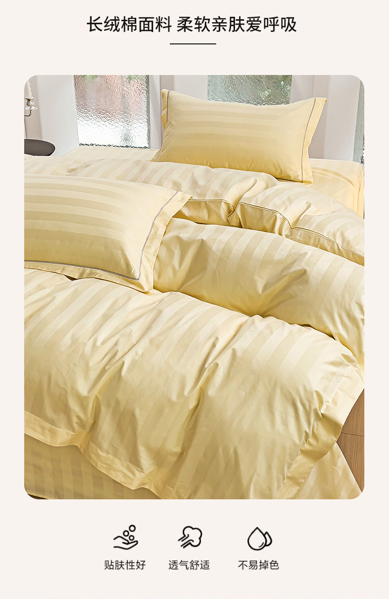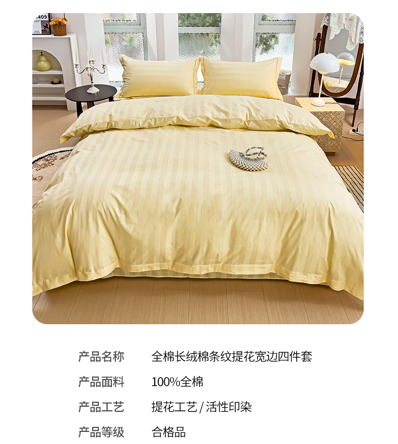 商品名称:品乐家纺 2024新款60支长绒棉条纹宽边四件套 宽边条纹黄