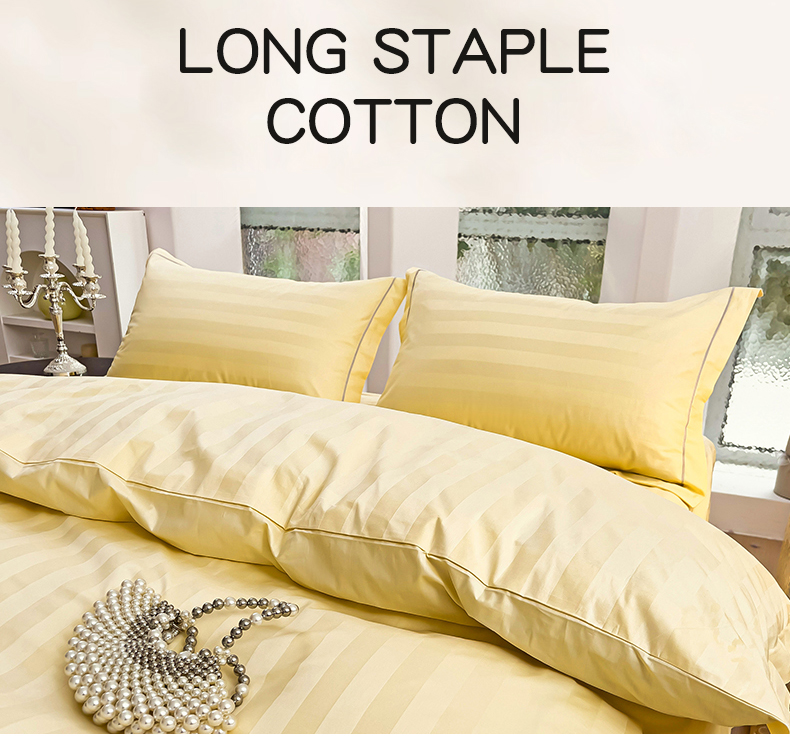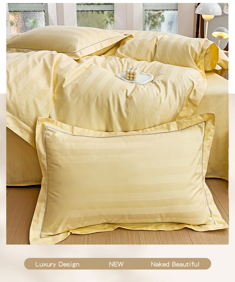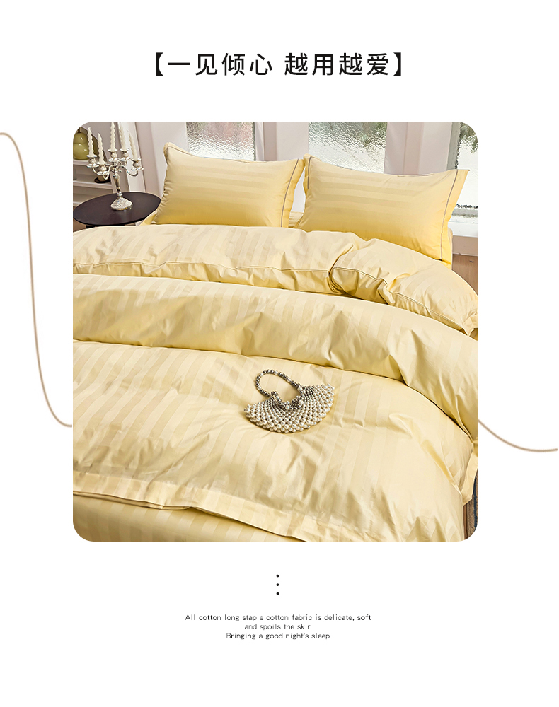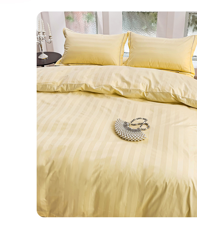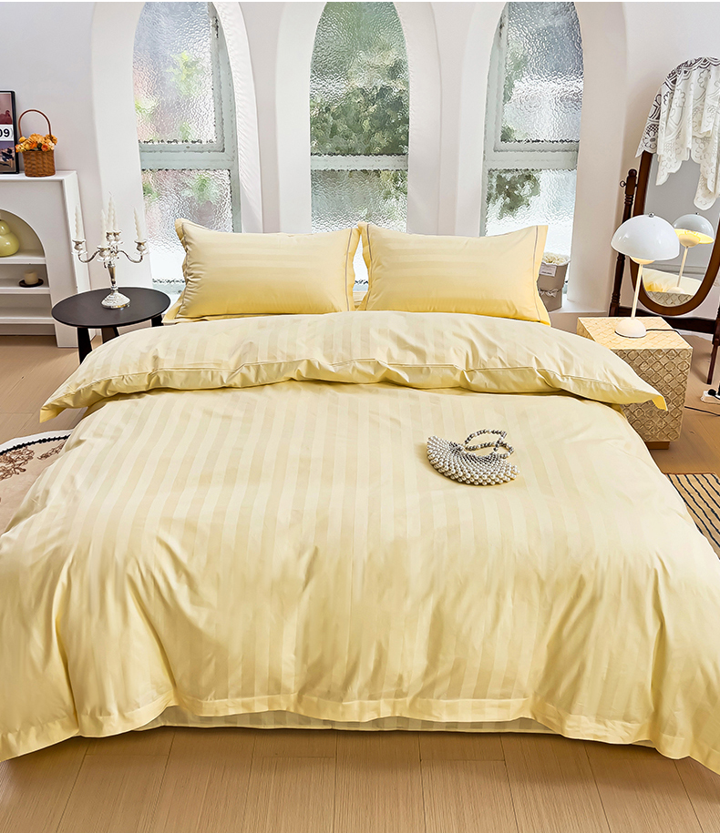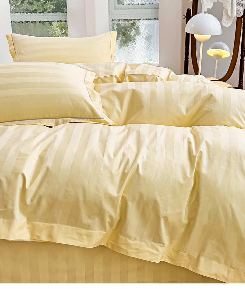 品乐家纺 2024新款60支长绒棉条纹宽边四件套 宽边条纹黄