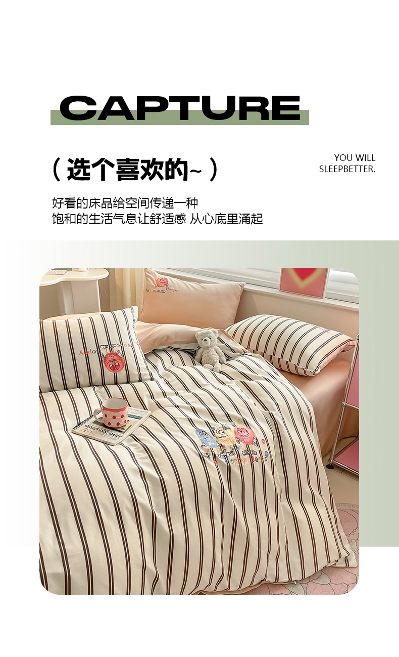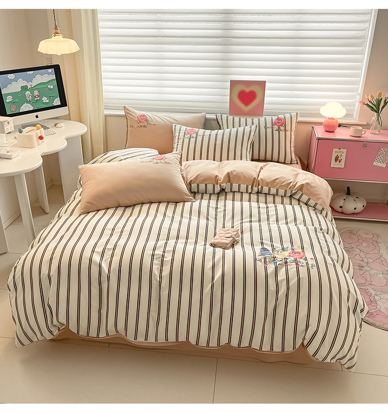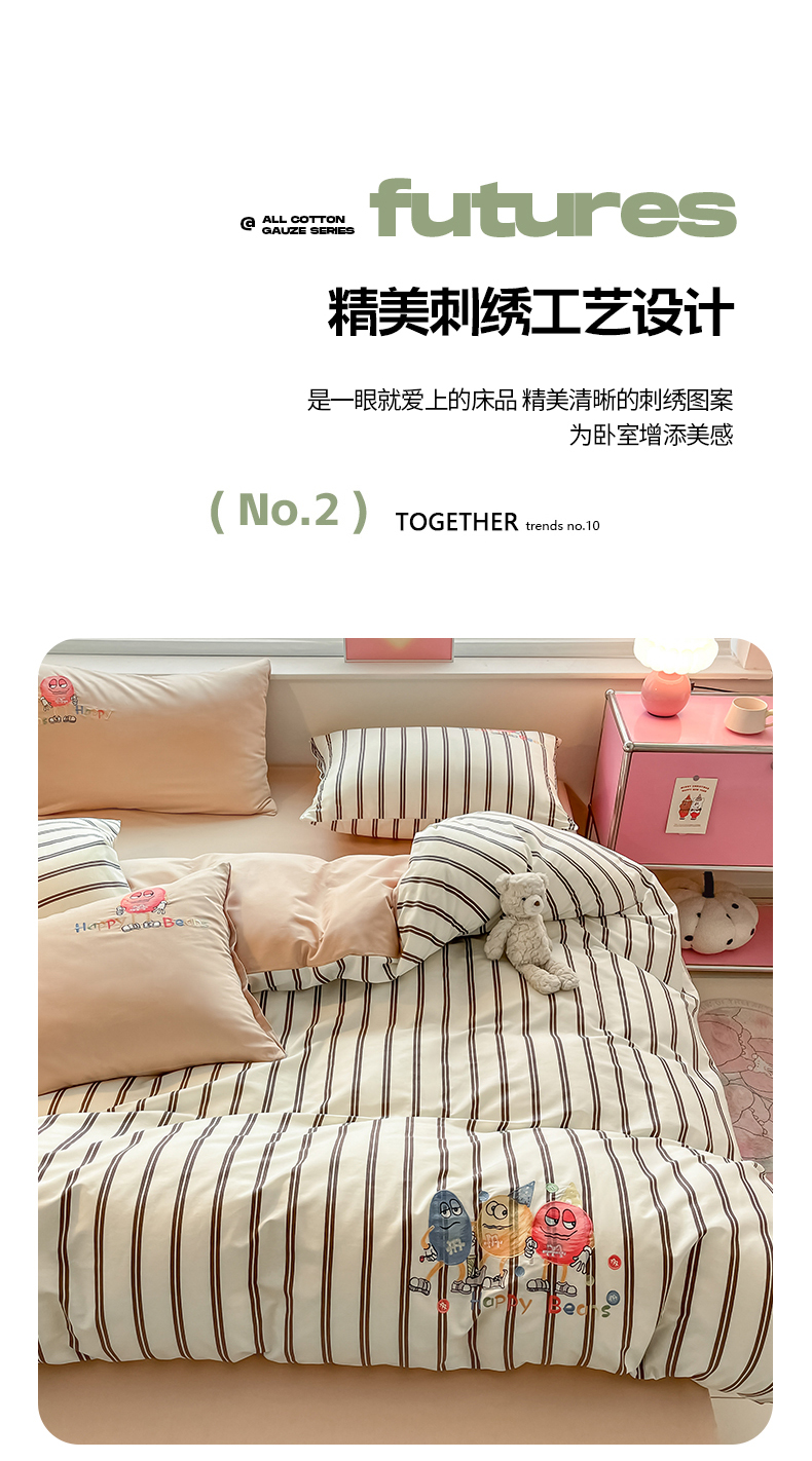 (总)蜜柚 2025秋冬新款色织水洗棉贴布花边款四件套,童趣-浅玉,童趣-卡其,童趣-洋气红